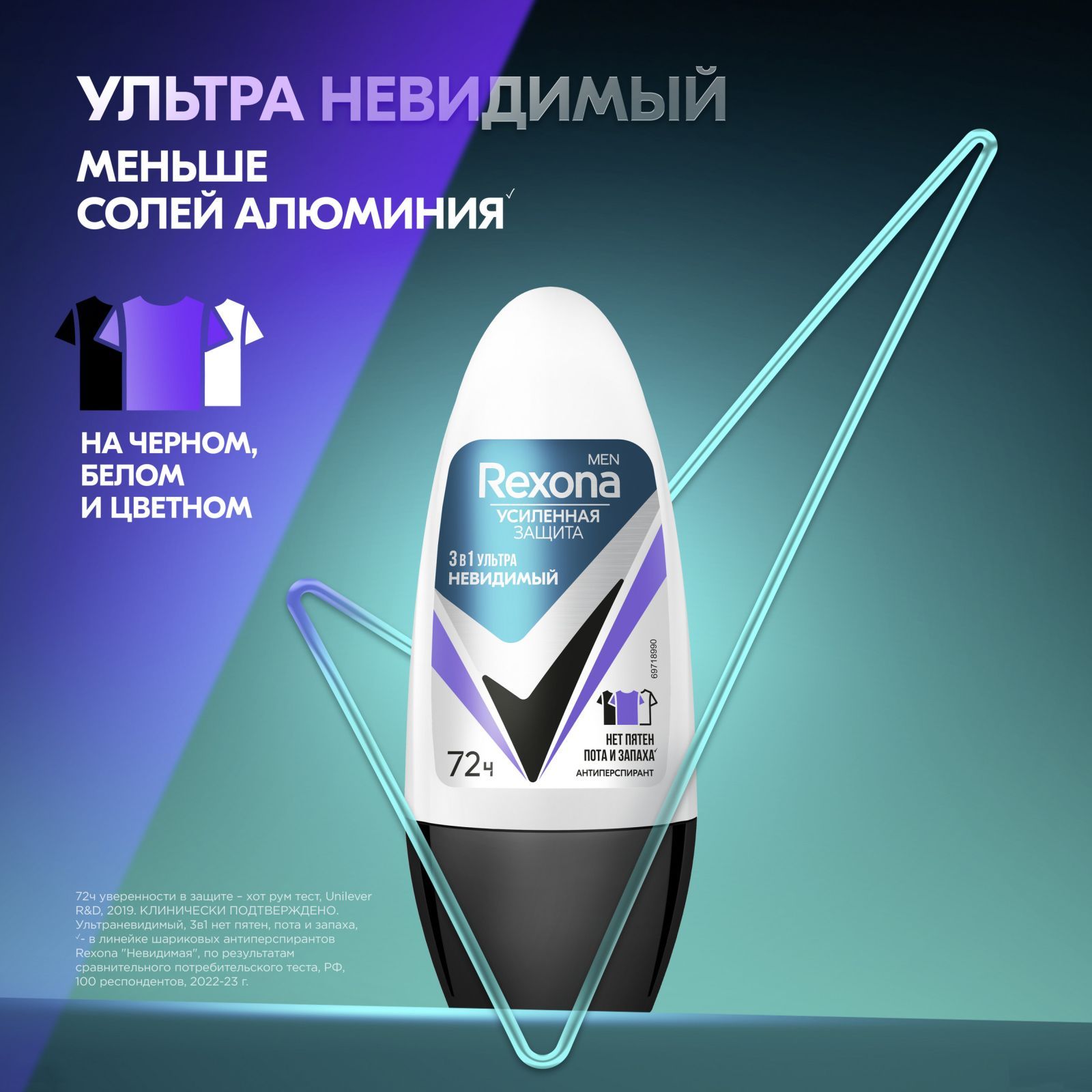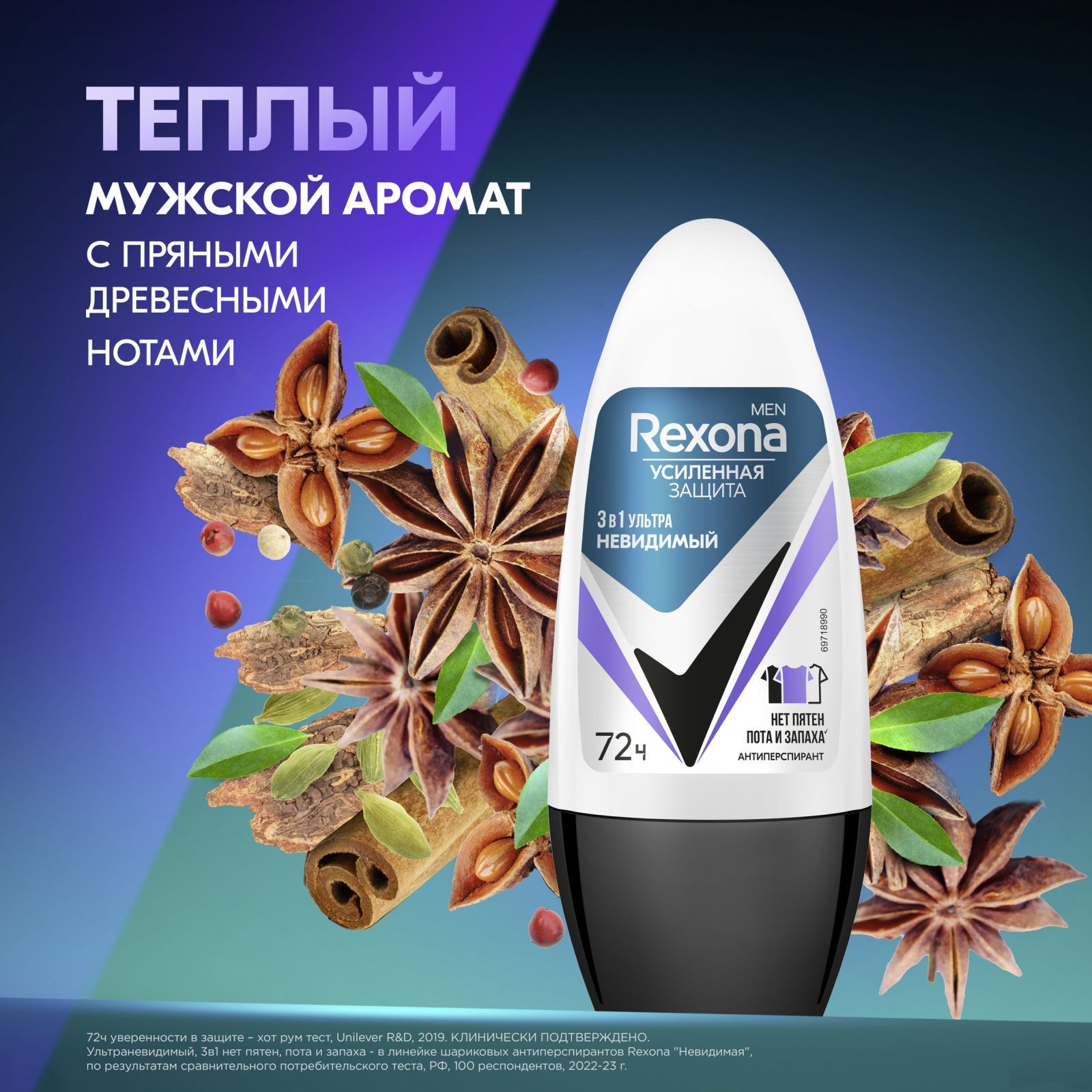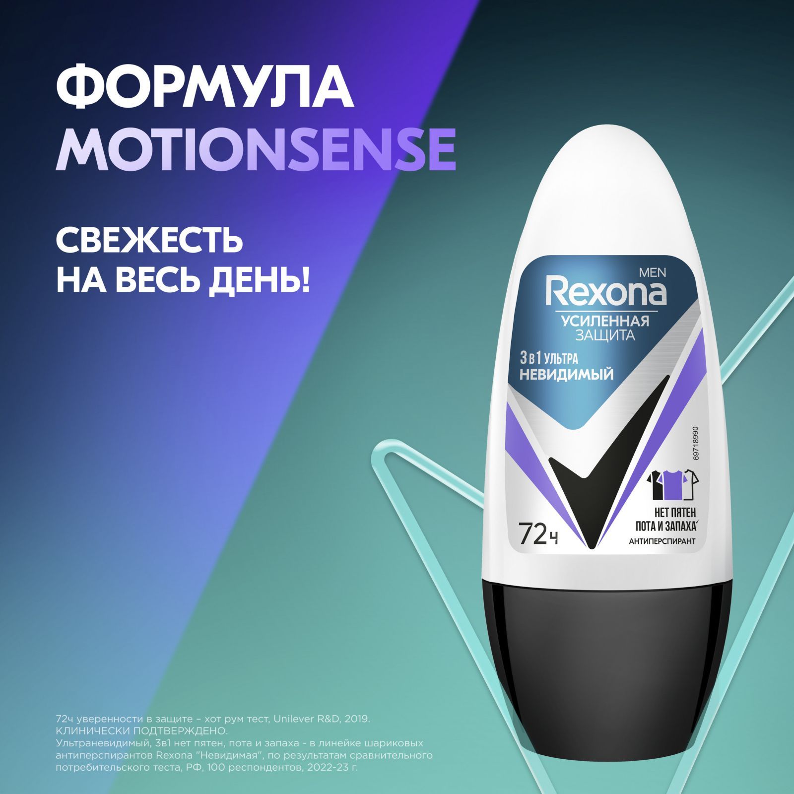 Rexona Men УЛЬТРАНЕВИДИМЫЙ антиперспирант шариковый 72ч уверенности 3в1 нет пятен, пота и запаха 50 мл