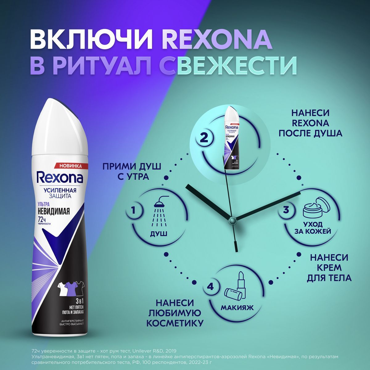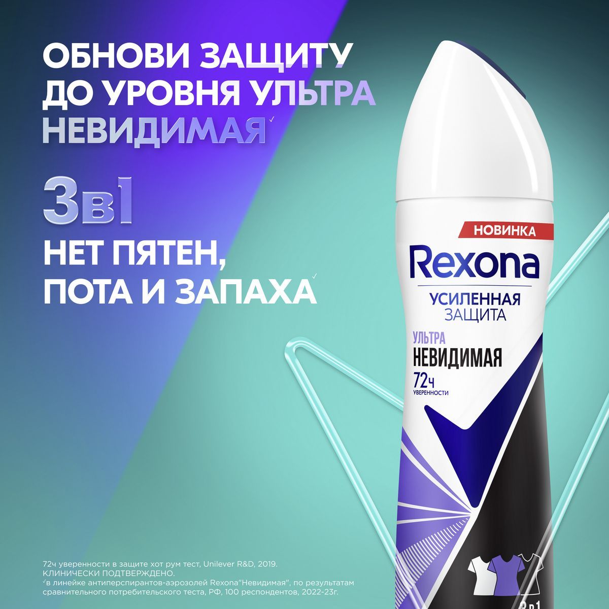 Rexona УЛЬТРАНЕВИДИМАЯ антиперспирант-аэрозоль 72ч уверенности нет пятен, пота и запаха 150 мл