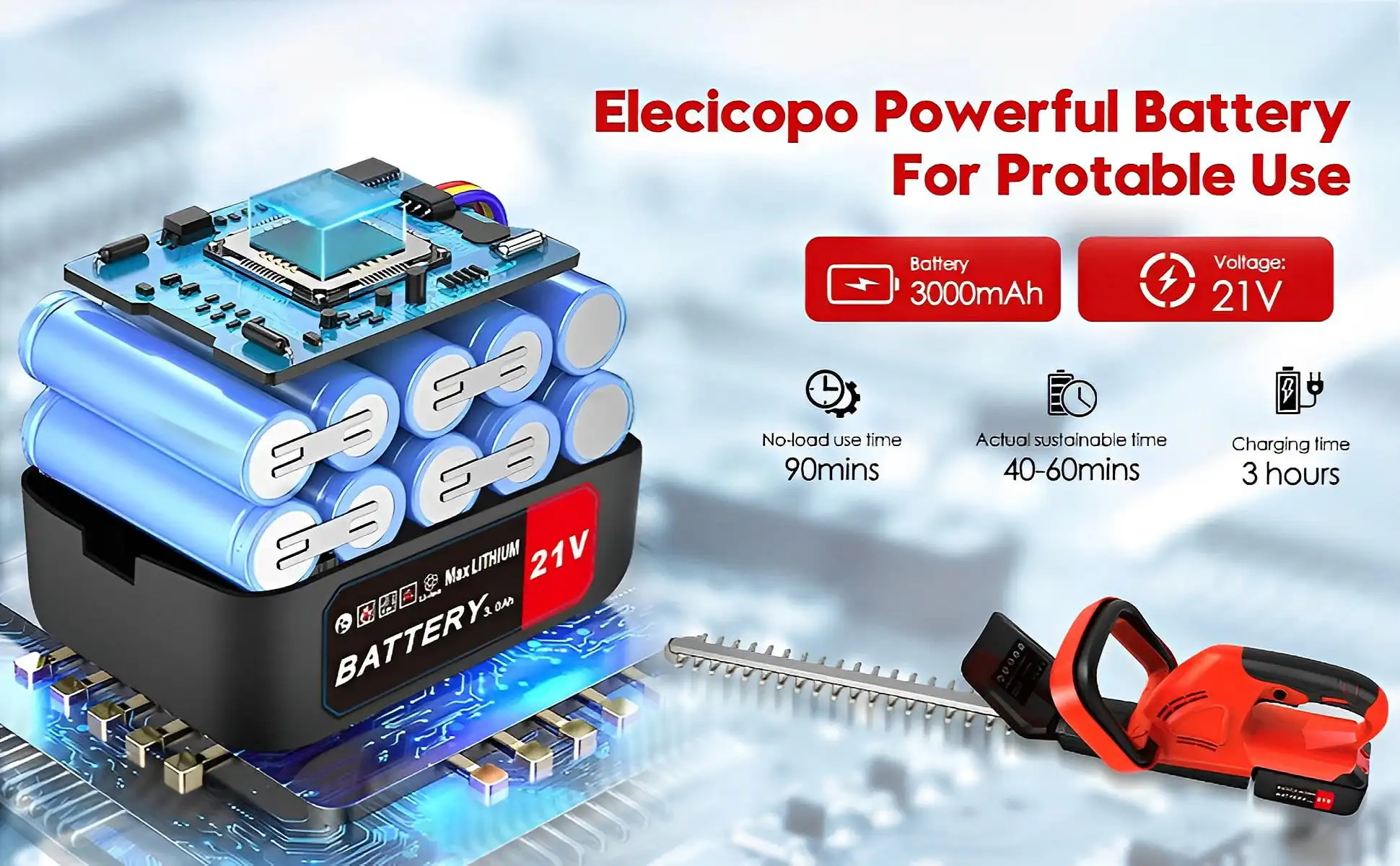 【 Аккумулятор емкостью 3000 мАч 】Его намного приятнее брать и брать куда угодно с триммером для живой изгороди с батарейным питанием, батарея емкостью 3000 мАч позволяет ему работать так же хорошо, как и проводной триммер для живой изгороди, но без шнура, больше не нужно беспокоиться о прорезании куста триммера беспроводной удлинитель! На боковой стороне портативного триммера для хеджирования есть индикатор уровня заряда батареи, поэтому вы всегда можете видеть, сколько заряда у вас осталось.