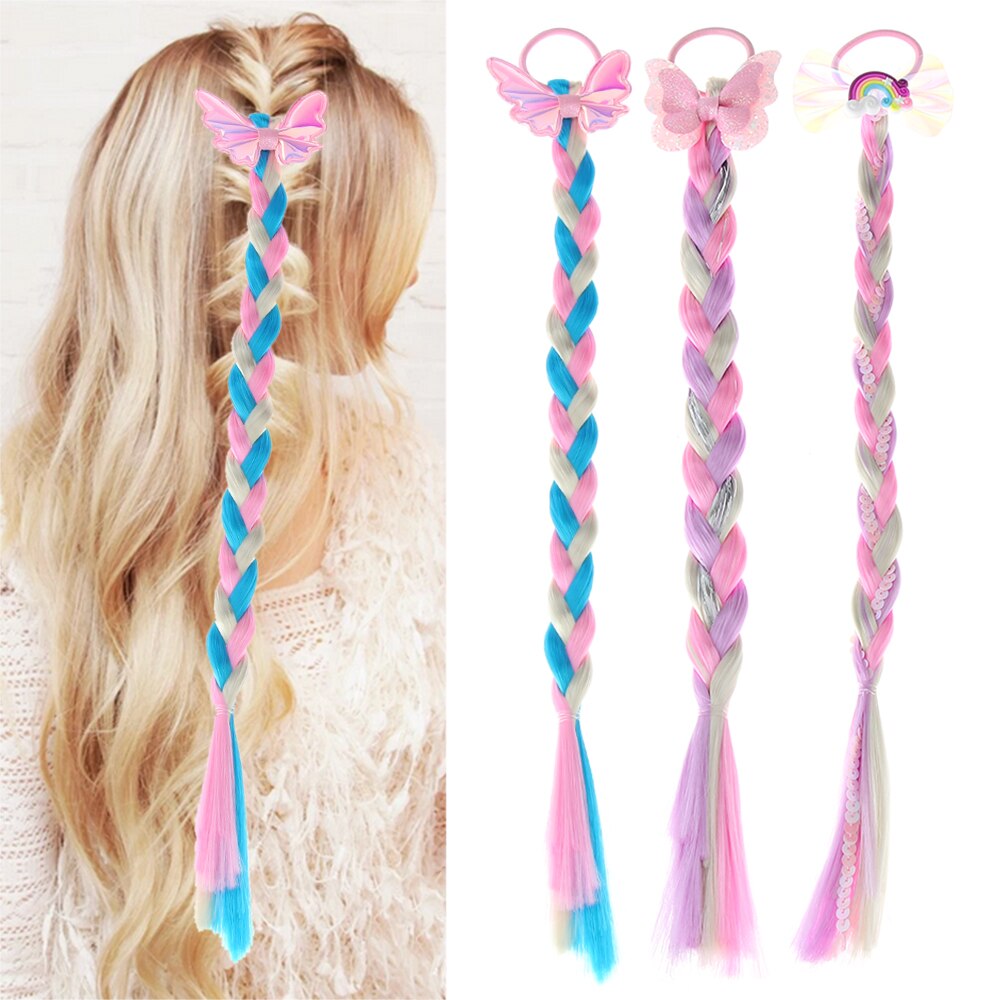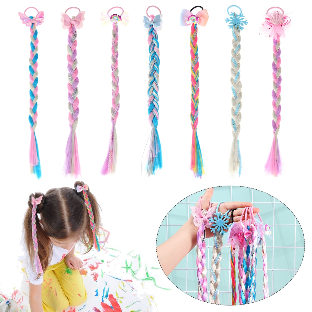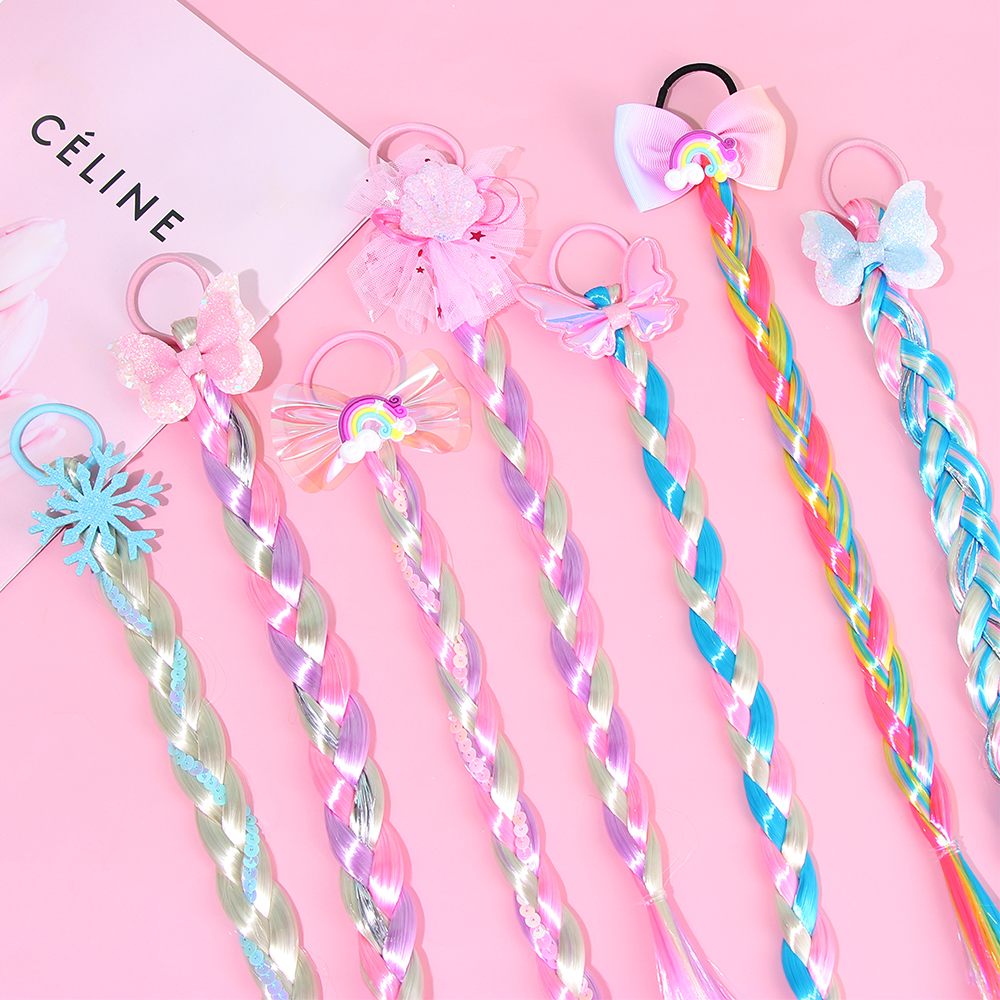 1 шт., яркие волосы для париков, милые волосы для девочек, принцесса, плетеная тесьма, эластичные резинки для волос, конский хвост, головной убор, модные детские аксессуары для волос