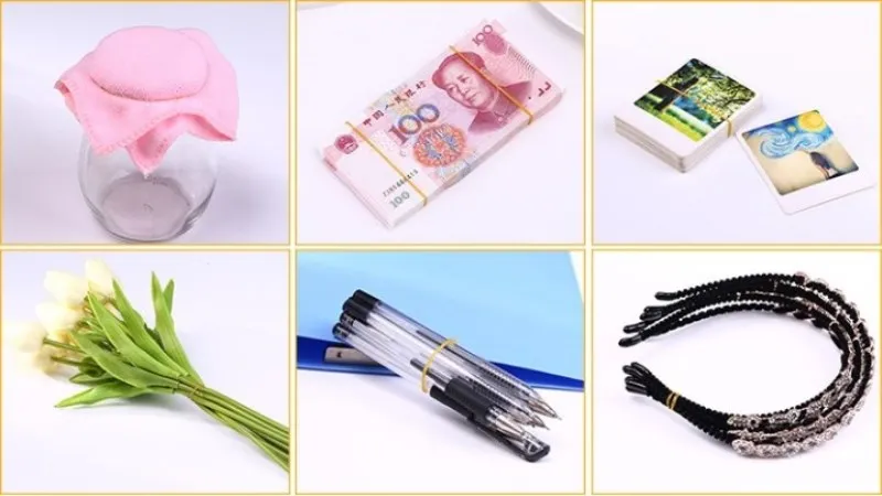 Обвязанные предметы для дома или офиса, денежные ленты, депозитные квитанции или квитанции, сделать мяч с резинкой, использовать их как резинку для волос, для поделок, как книжный знак, оберните свободные провода, свяжите карандаши, завяжите деньги или даже Используйте их как браслет.