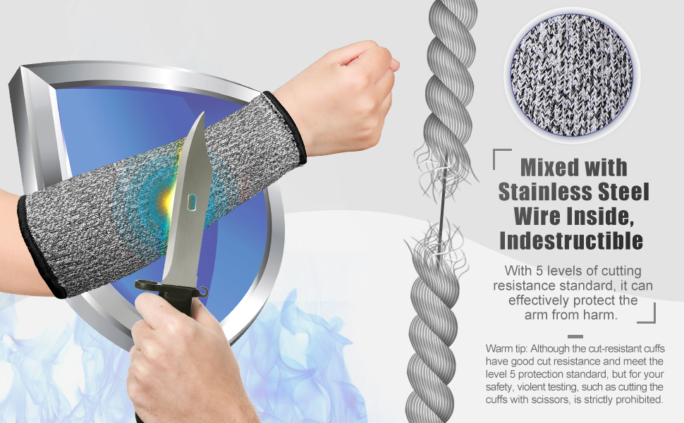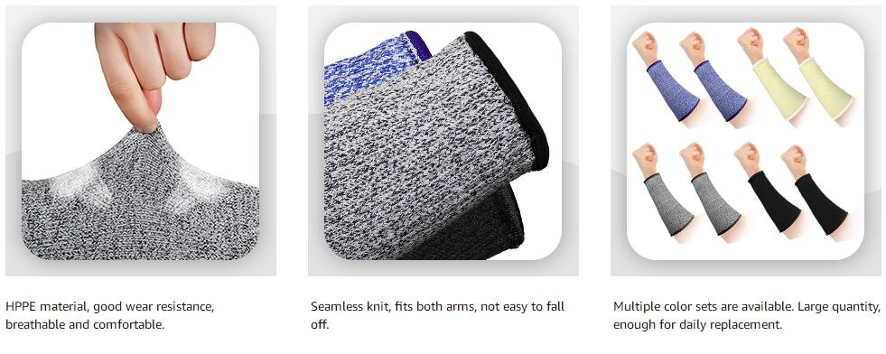 1. Качественный Материал: изготовлен из материала HPPE, нейлона и спандекса, защитные рукава для рук в 15 раз прочнее стали, высокоэффективный полиэтилен делает его очень дышащим, эластичным и легким, не порезы и удобство ношения, помогает защитить предплечья от легких ожогов и высоких температур.