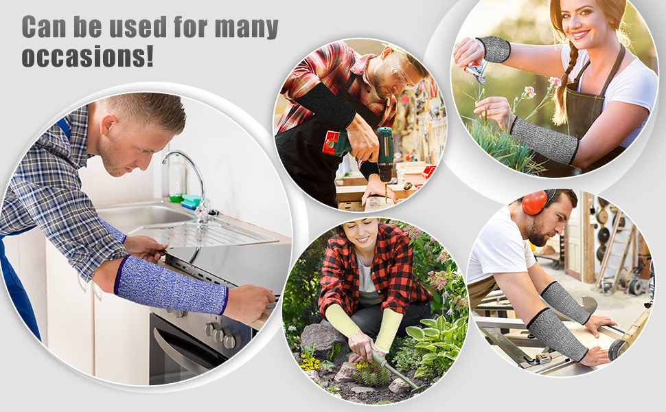 5. Широкий спектр применения: обладая стандартом сопротивления порезам уровня 5, защитные рукава полезны для защиты запястья в различных ситуациях и областях, таких как промышленность, строительство и пищевая промышленность, также подходит для кухни, сада, фермы, чтобы предотвратить травмы или царапины рук.