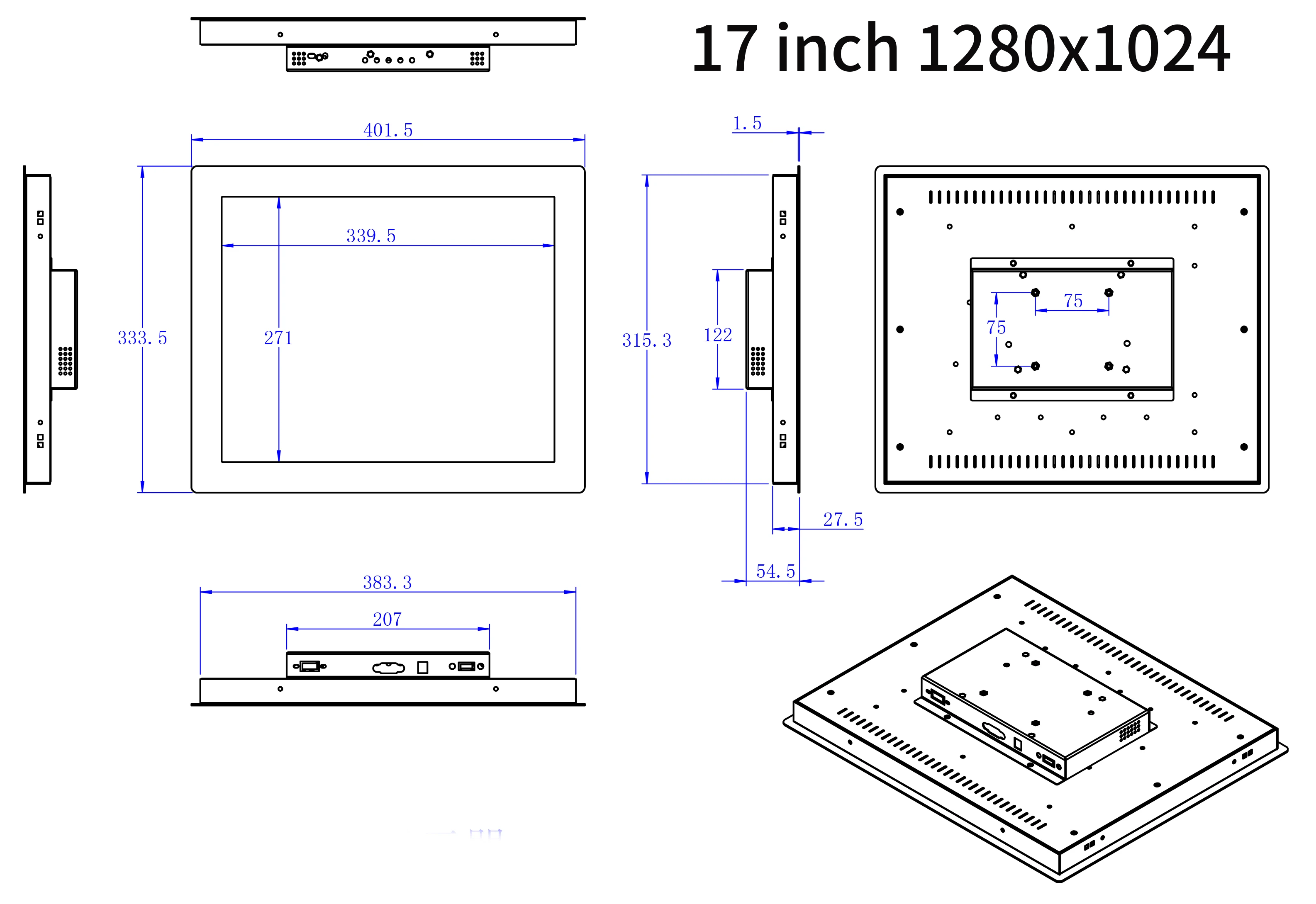 ЖК-дисплей 17/19 дюймов, соотношение сторон 5:4, разрешение 1280*1024.