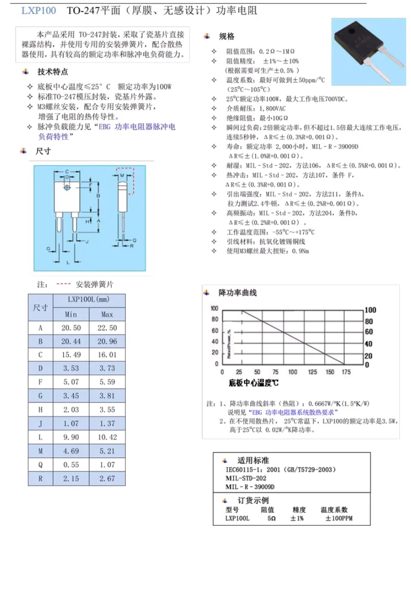 Толстопленочный неиндуктивный резистор 100 Вт 0.05R-50K высокой мощности TO247, высокочастотная точность