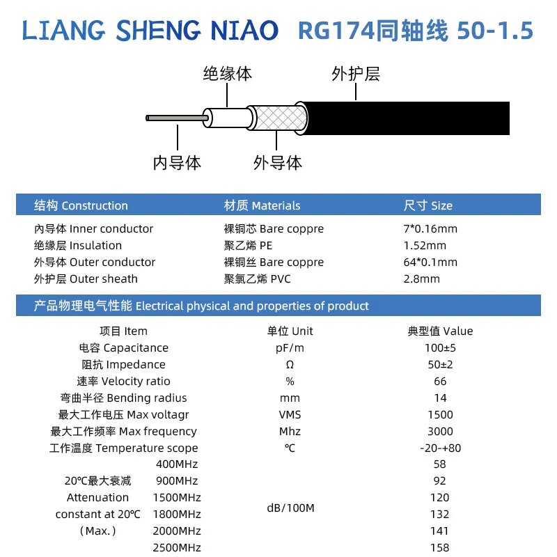 RG174 кабели радиочастотная антенна SYV 50-1,5 коаксиальный кабель RG174 посеребренный медный сердечник радиочастотная линия Беспроводная Интерком