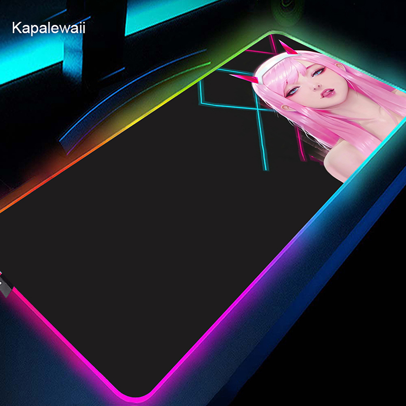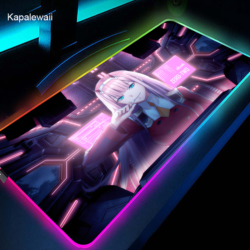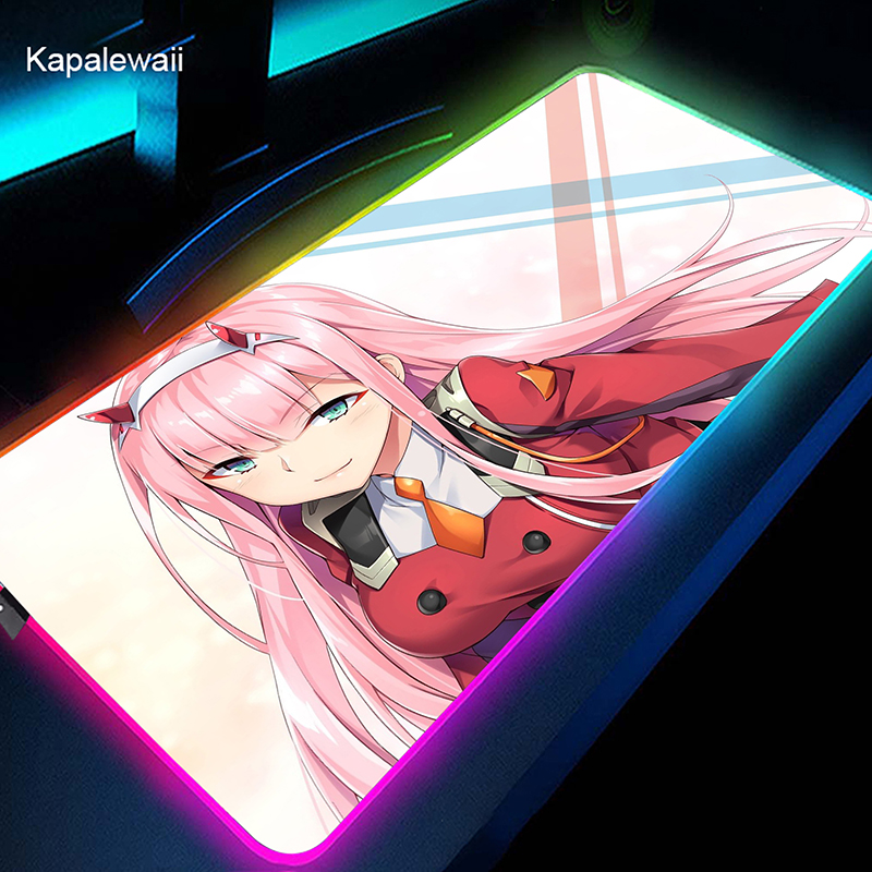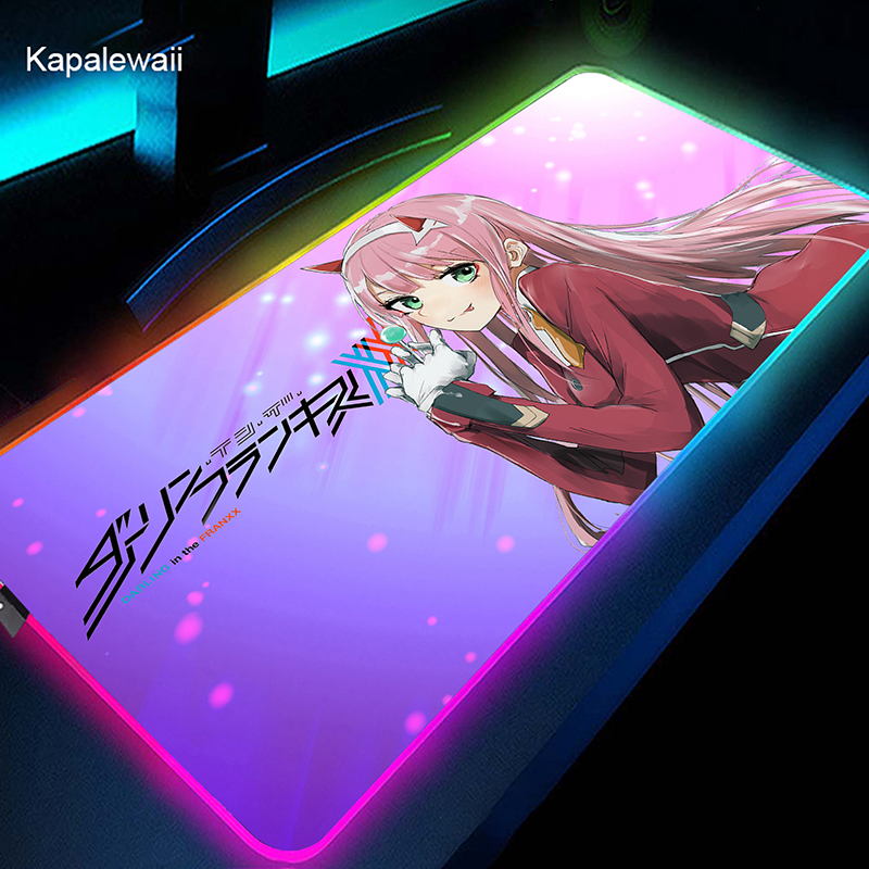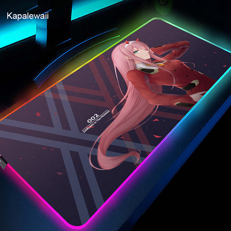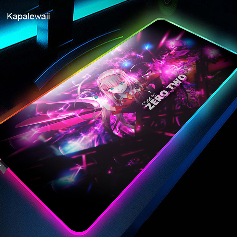 RGB коврик для мыши Gamer большой коврик для мыши Аниме Zero Two XL коврик для мыши Darling in the FranXX 02 ковер светодиодный резиновый коврик для клавиатуры 50x100cm