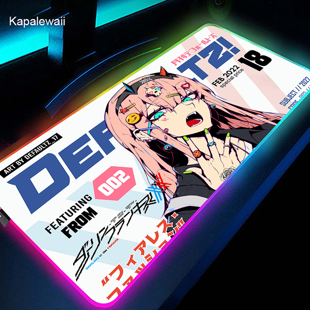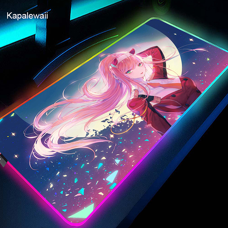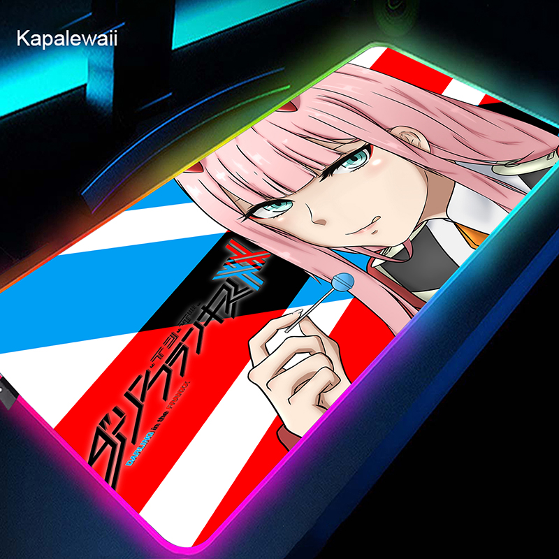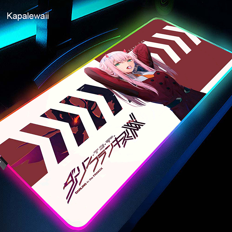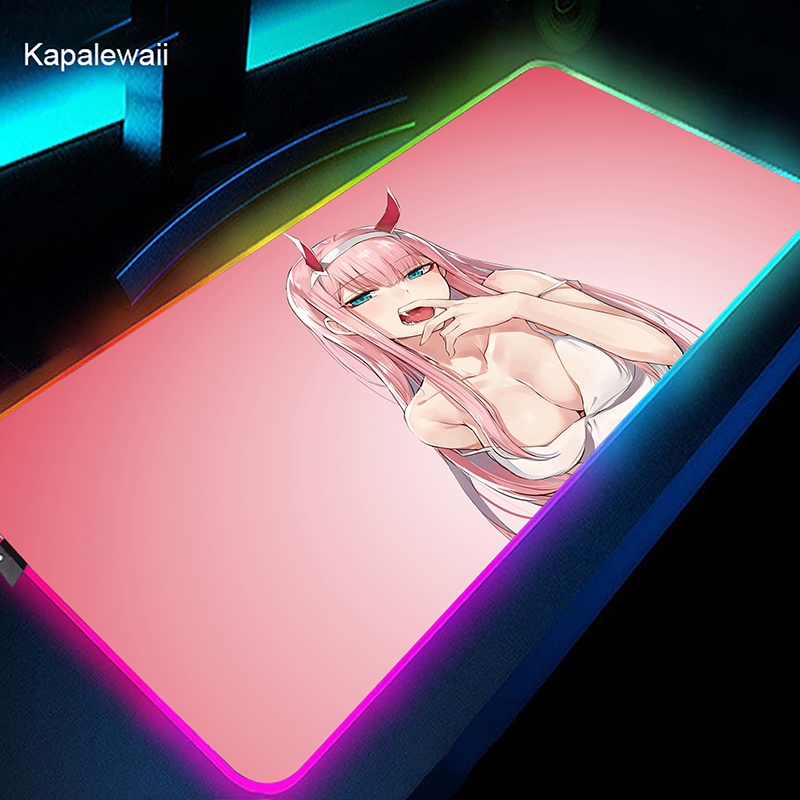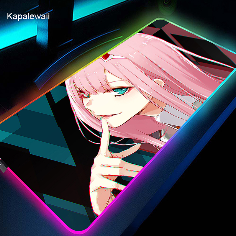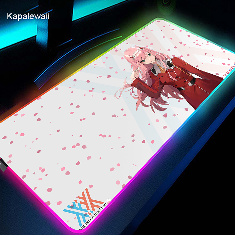 RGB коврик для мыши Gamer большой коврик для мыши Аниме Zero Two XL коврик для мыши Darling in the FranXX 02 ковер светодиодный резиновый коврик для клавиатуры 50x100cm