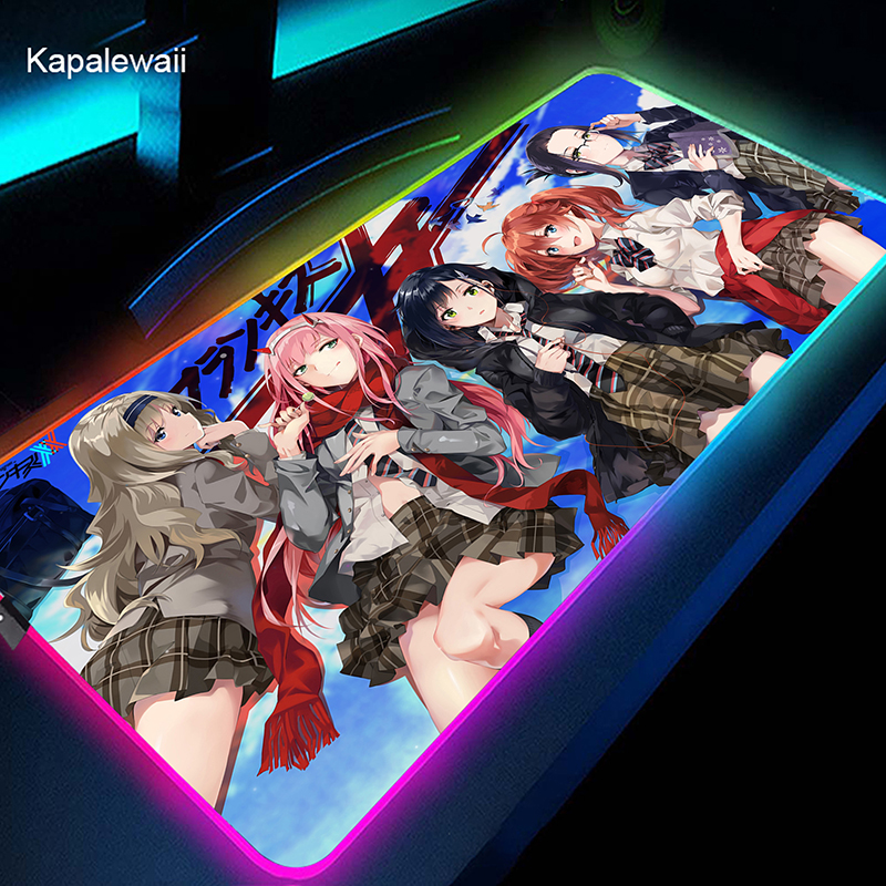 RGB коврик для мыши, большой коврик для мыши, аниме Zero Two XL, коврик для мыши, дорогая в FranXX 02, коврик, светодиодные резиновые коврики для клавиатуры 50x100 см