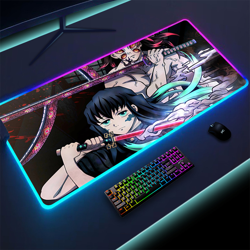 RGB коврик для мыши Muichiro Tokito, игровые аксессуары, HD печать, компьютерная большая игровая клавиатура, светодиодный, коврик для мыши XXL, для ПК, геймера, ноутбука, Настольный коврик
