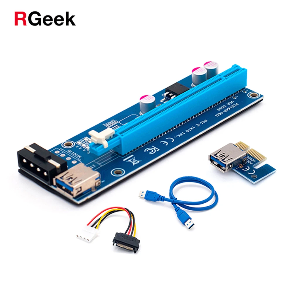 RGEEK USB 3,0 PCIE Riser 006 009S PCI Express X1 к X16 SATA к 4Pin 6Pin Molex кабель питания Spilitter PCI-E Riser для видеокарты