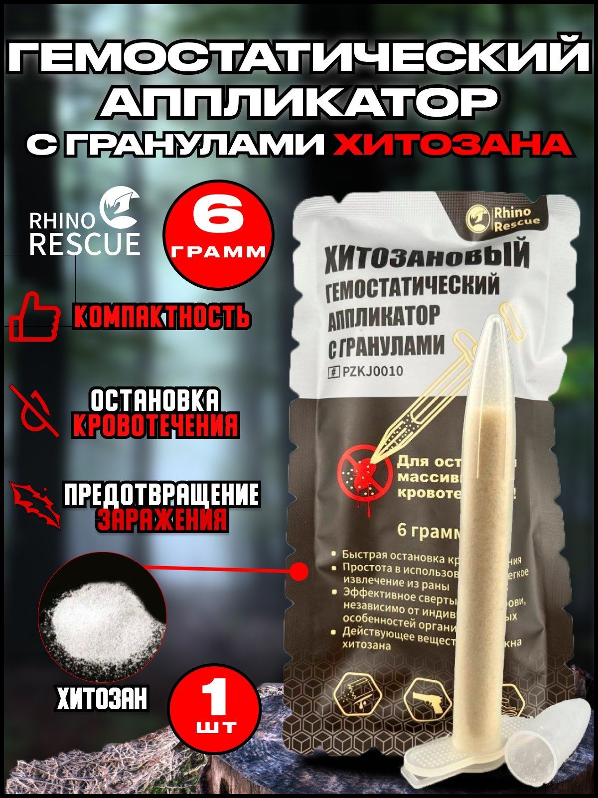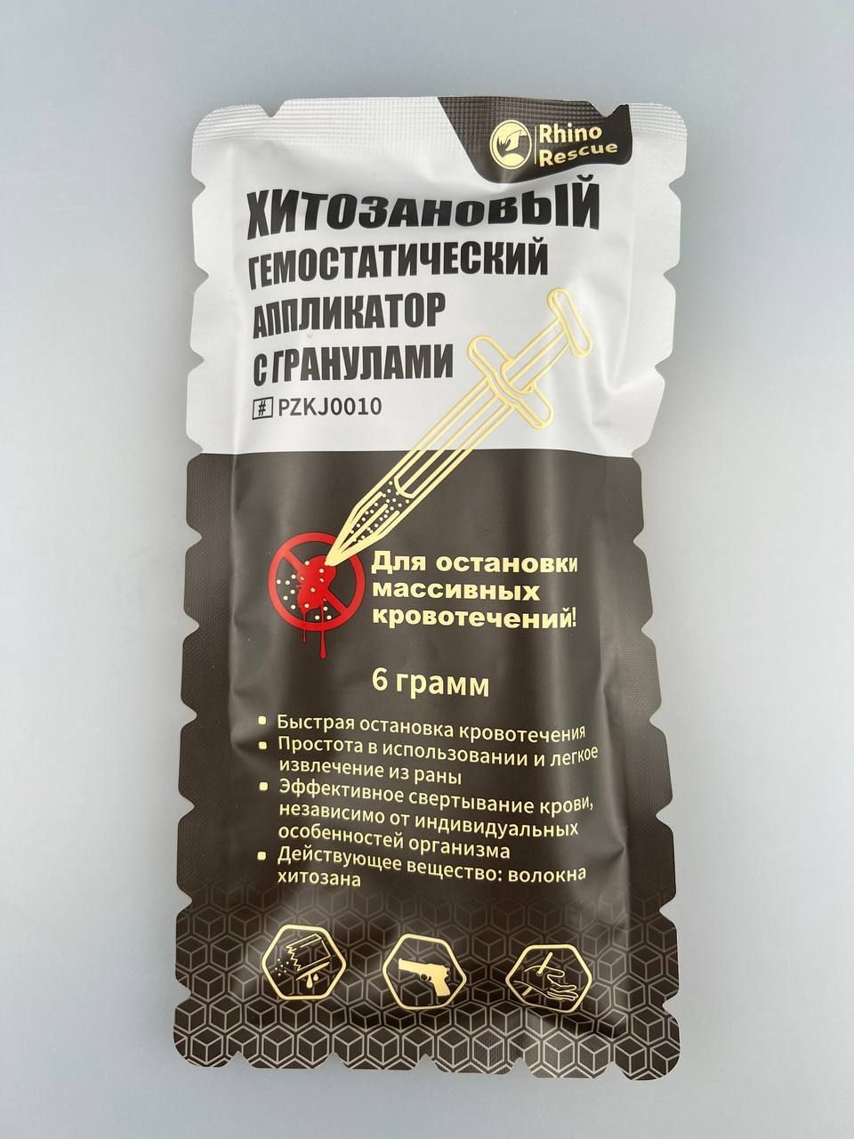 Гранулы гемостатические поставляются в шприце, что обеспечивает надежную упаковку и сохраняет свойства препарата в течение длительного времени. Это делает хитозановый порошок идеальным выбором для использования в экстремальных условиях и на открытом воздухе. Рино рескью можно использовать для остановки кровотечений при травмах сложной формы. Он быстро останавливает кровотечение, обезболивая при этом больной участок тела.