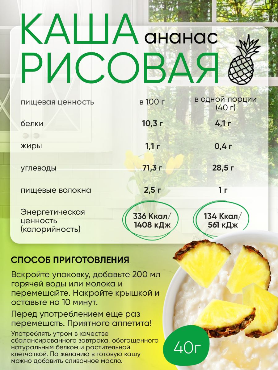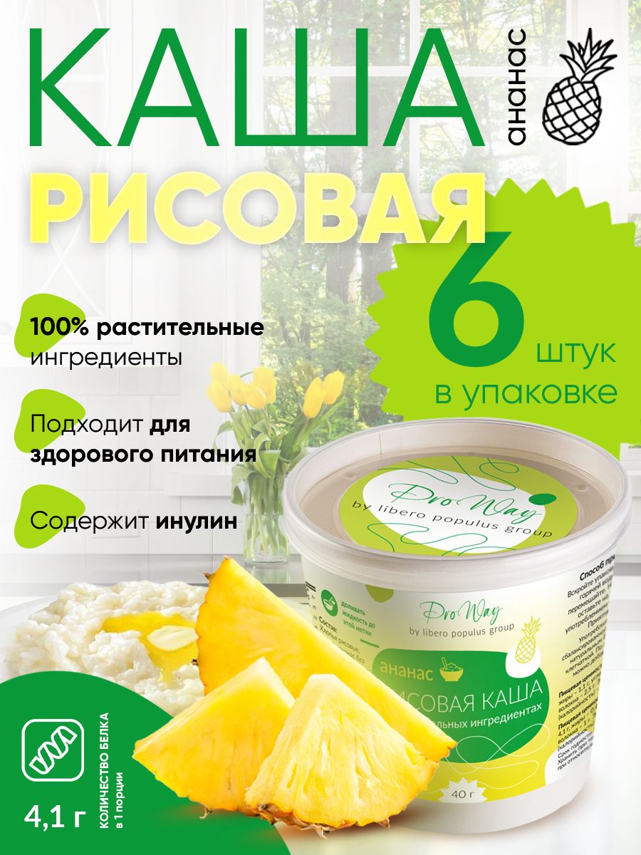 Рисовая каша на растительном протеине быстрого приготовления со вкусом ананаса, упаковка 6шт