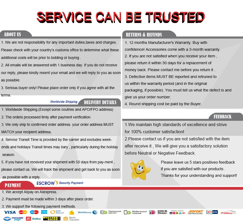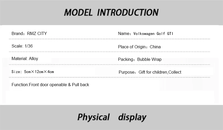 Пожалуйста, обратите внимание, что для оптовой модели автомобиля будет защищена пузырчатой пленкой, и мы будем депонированы для сохранения! Поэтому, пожалуйста, будьте уверены, чтобы купить ваши любимые продукты.