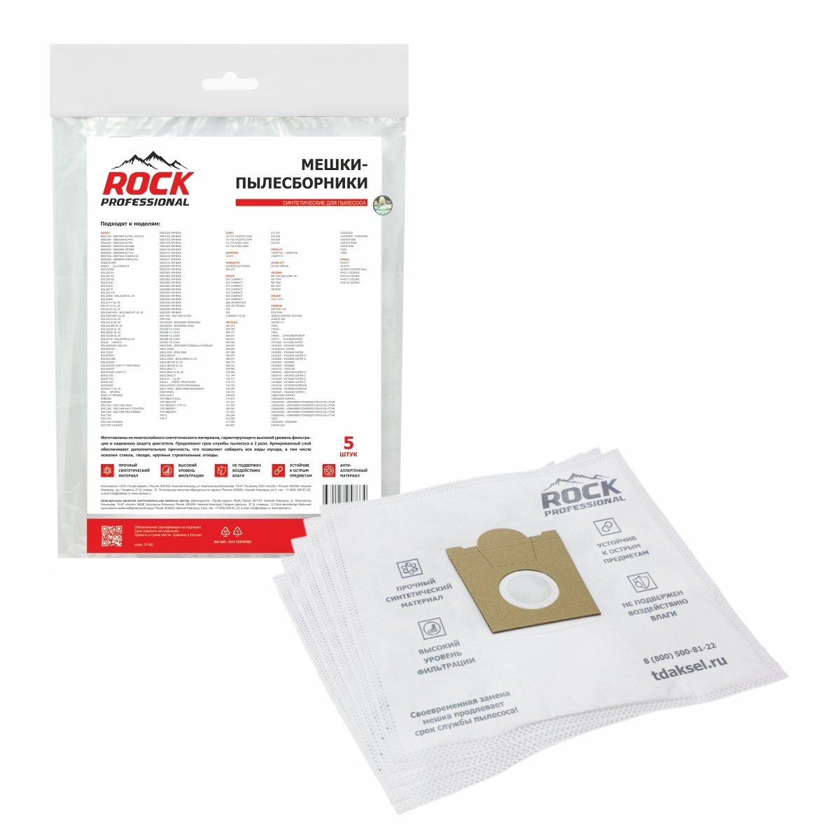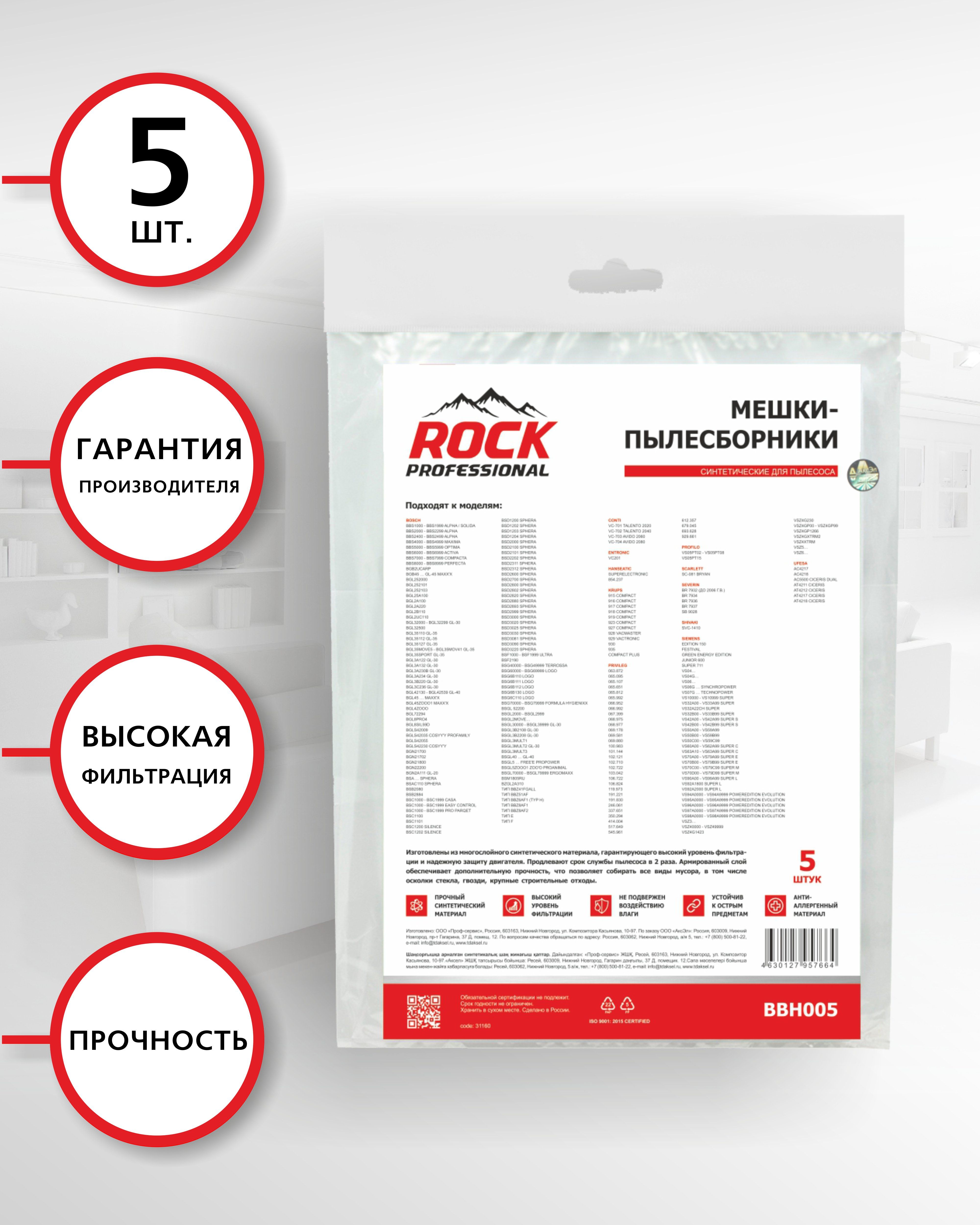 ROCK professional BBH005 Мешки для пылесоса BOSCH, 5 шт., синтетические, многослойные, подходят: SIEMENS, SCARLETT, UFESA /пылесборники
