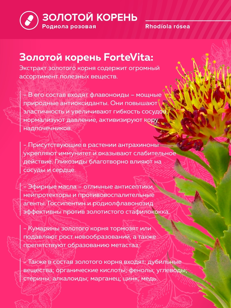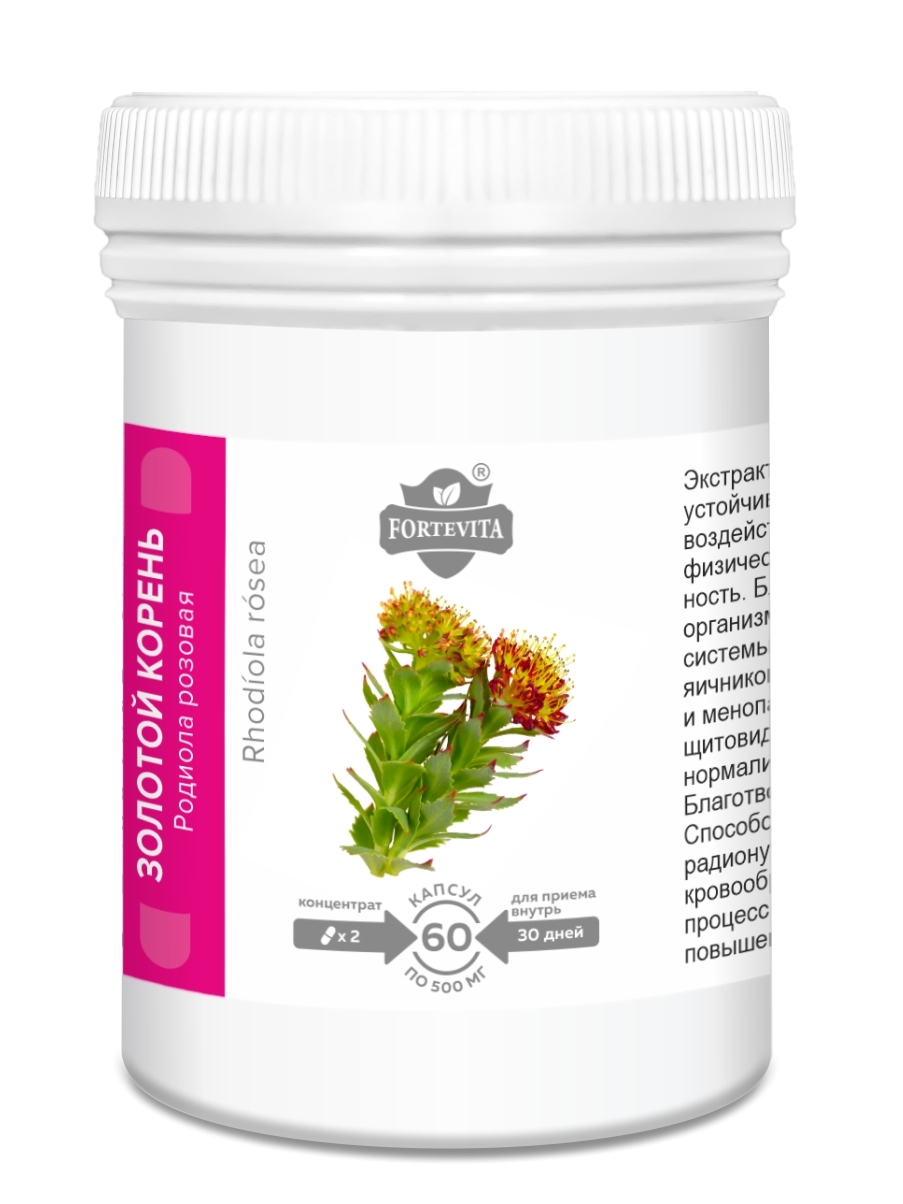 Родиола Розовая (Золотой Корень) Forte Vita PREMIUM Алтайский экстракт сухой в капсулах 60 штук по 500 мг.