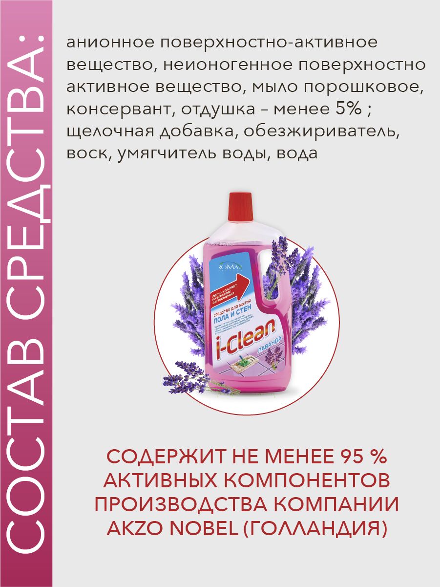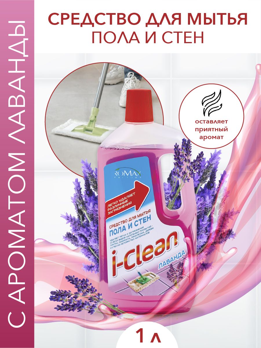 ROMAX Средство для мытья пола стен I CLEAN лаванда 1 л Белорусская косметика бытовая химия чистящее средство для пола и стен