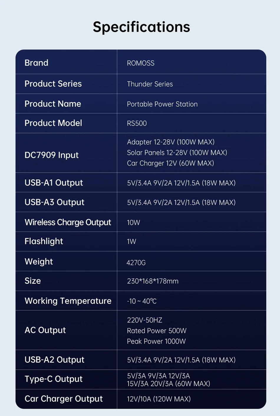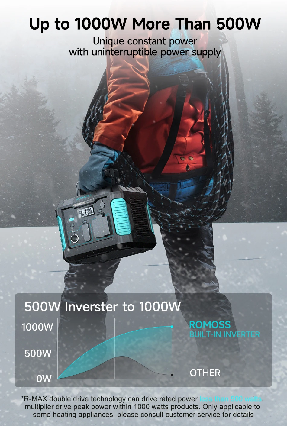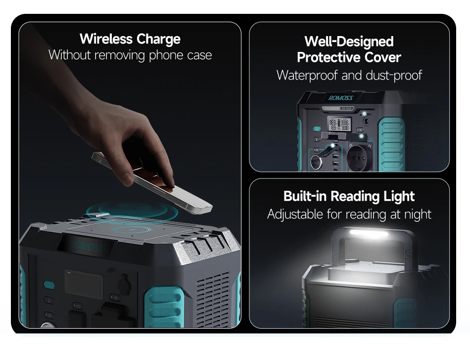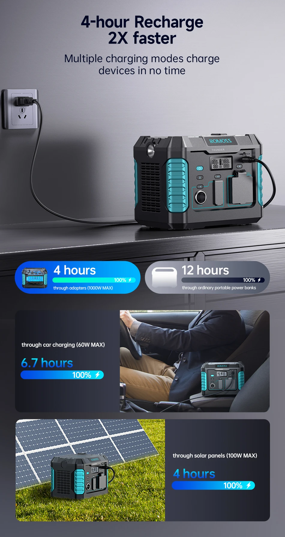 ROMOSS Портативная электростанция 1000W - 500W 400Wh ~933Wh аккумуляторный генератор беспроводной зарядки электростанции для кемпинга на открытом воздухе дома