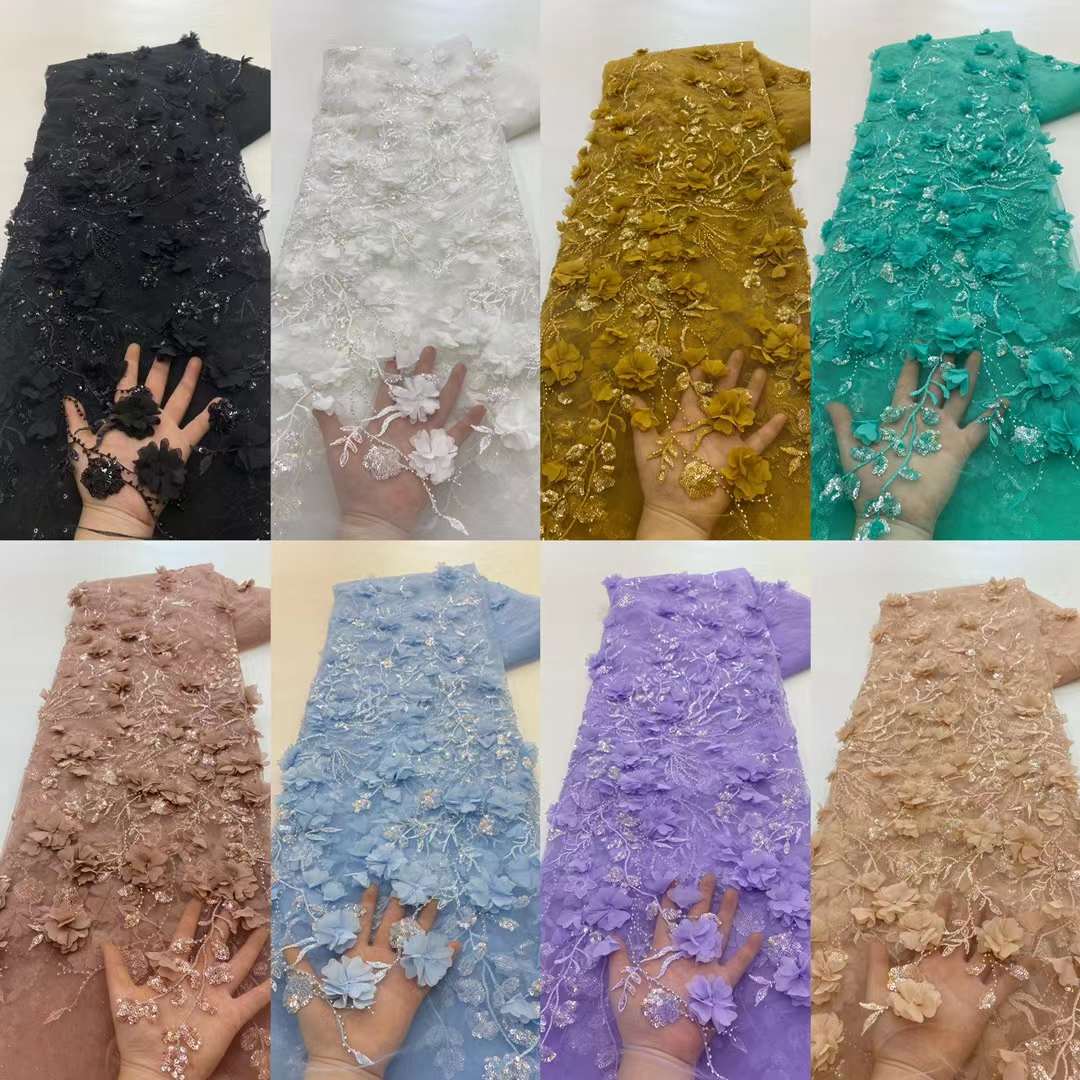 Роскошная африканская 3D Цветочная ткань, кружево 2022, новейшая кружевная ткань, блестящие французские блестки, бусины для свадебного платья