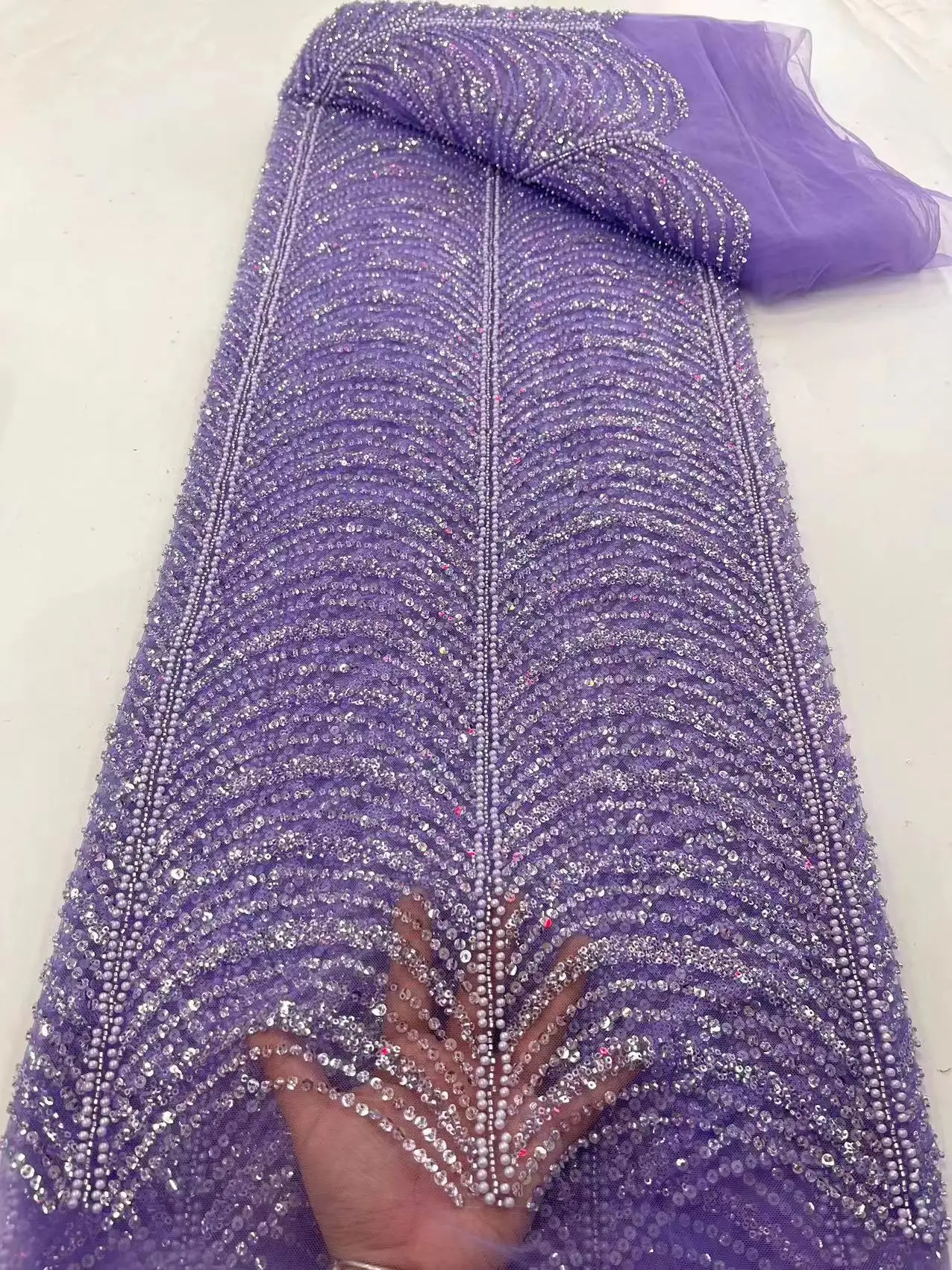 Роскошная Тяжелая фиолетовая кружевная ткань DUOFEIYA с блестками для свадебного платья, вечернее платье, французская Кружевная Ткань 5 ярдов