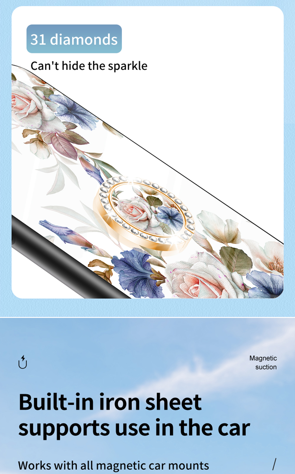 Роскошное закаленное стекло для LG V60 G9 G8Thin G7 G6, яркий цветочный фонарь с магнитным кольцом