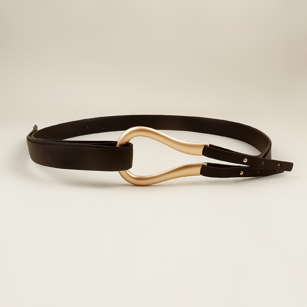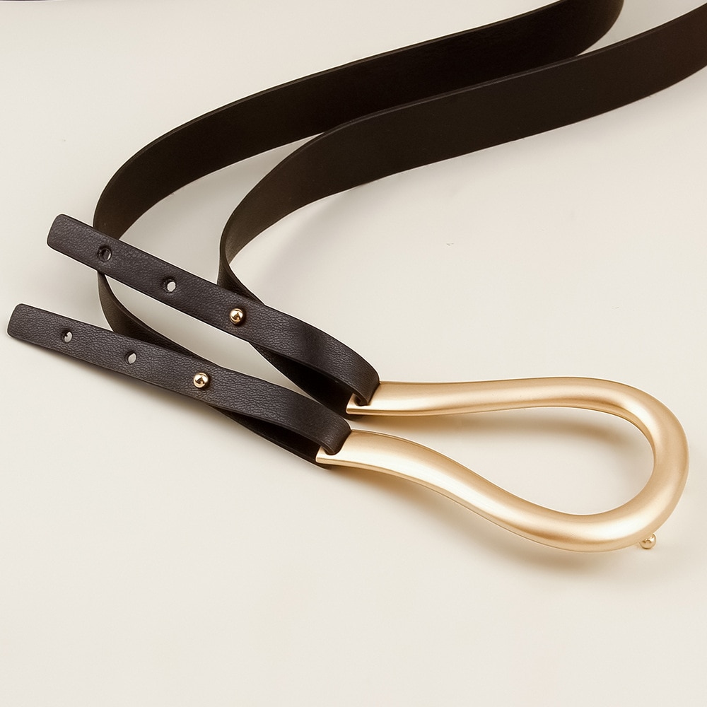 Роскошные Брендовые женские ремни, тонкий ремень из искусственной кожи с золотой пряжкой для платьев и брюк, повседневный черный женский дизайнерский пояс