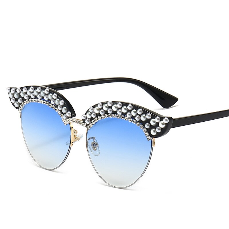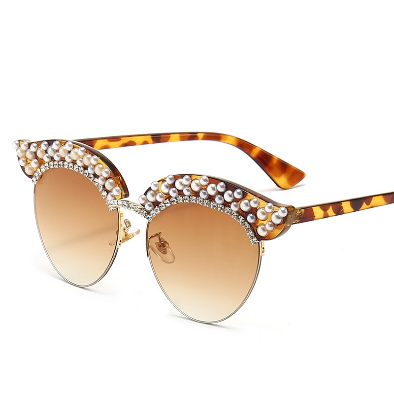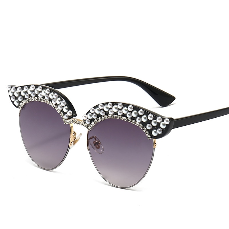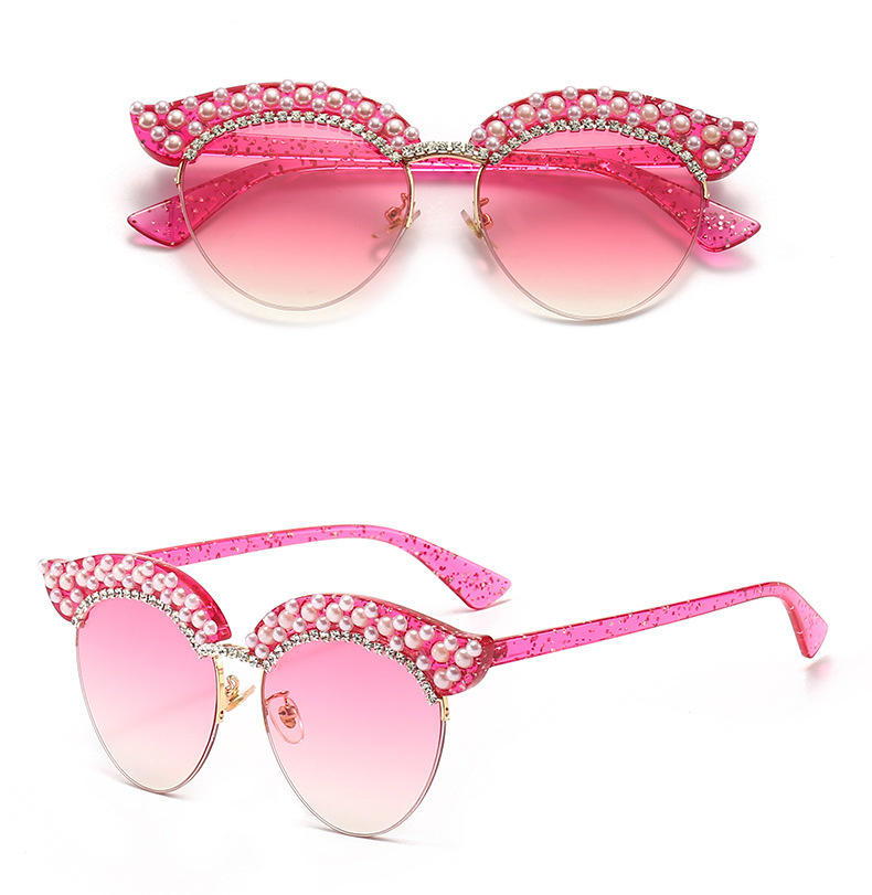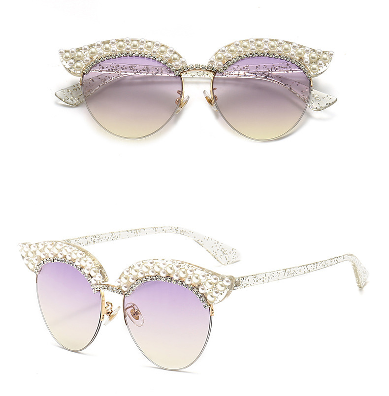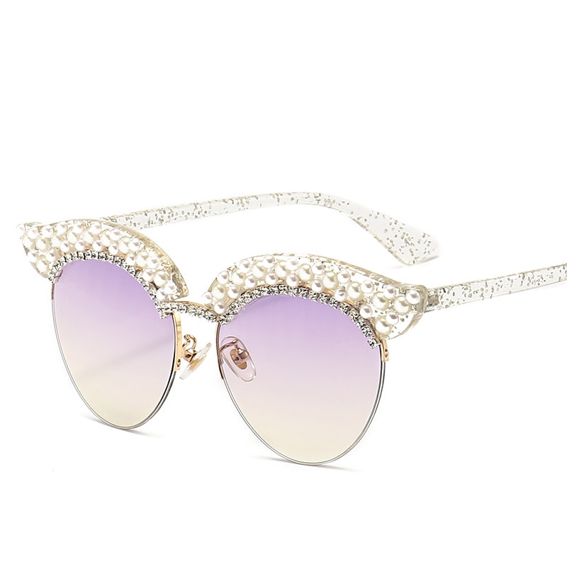 Роскошные дизайнерские солнцезащитные очки «кошачий глаз» женские Винтажные Солнцезащитные очки без оправы Новинка 2023 блестящие искусственные очки для женщин