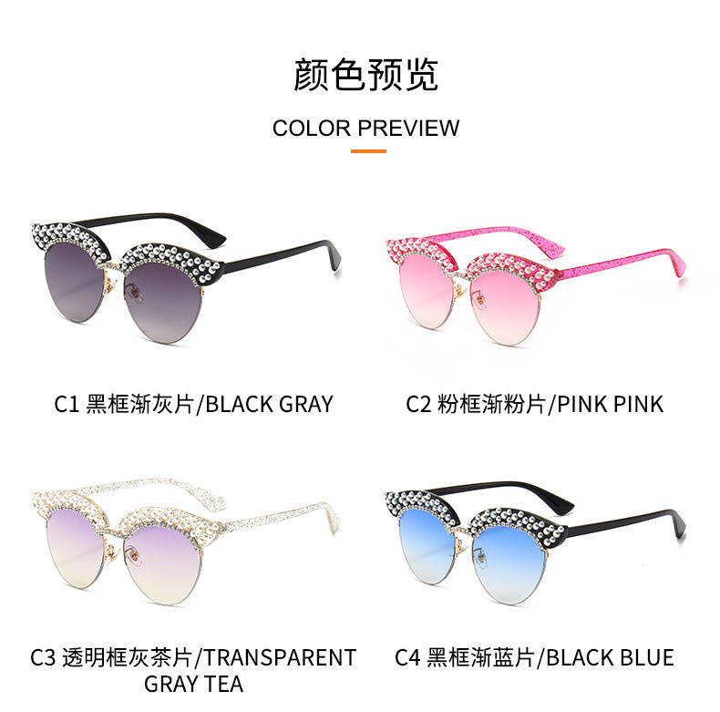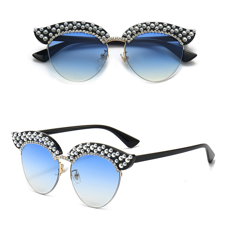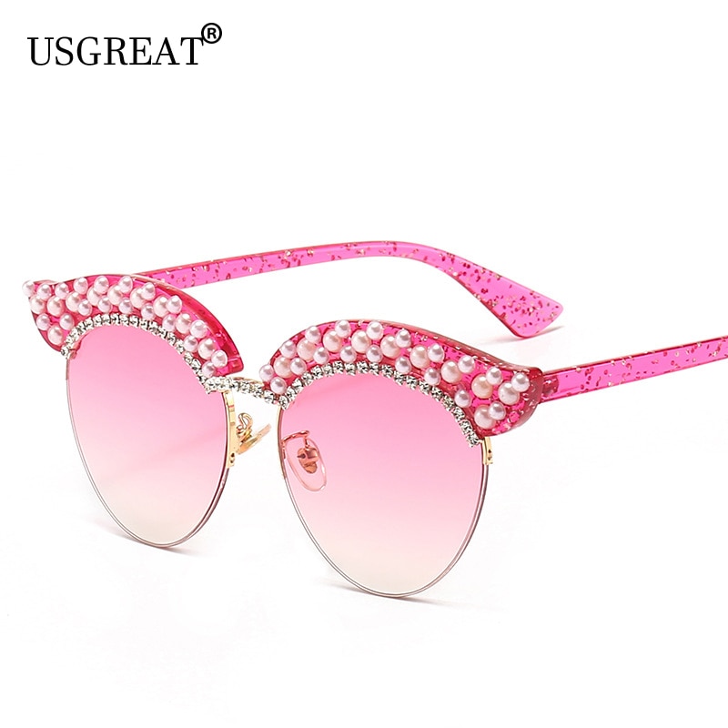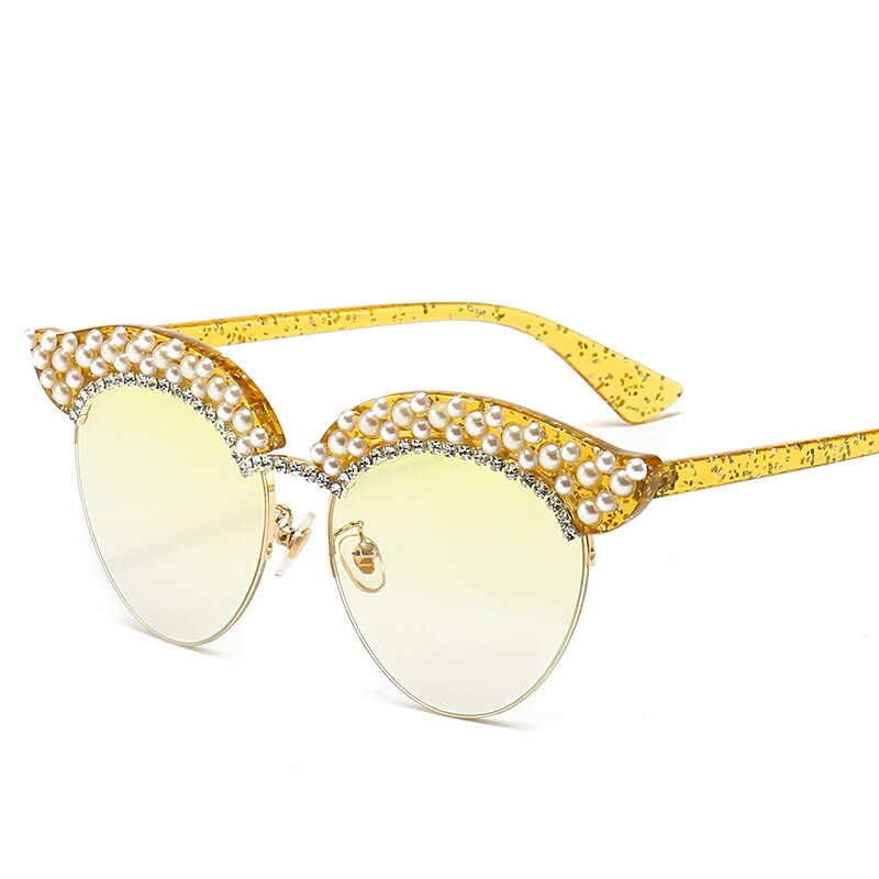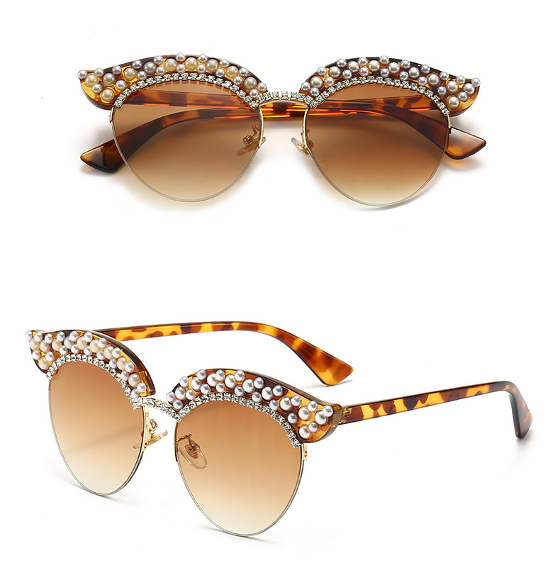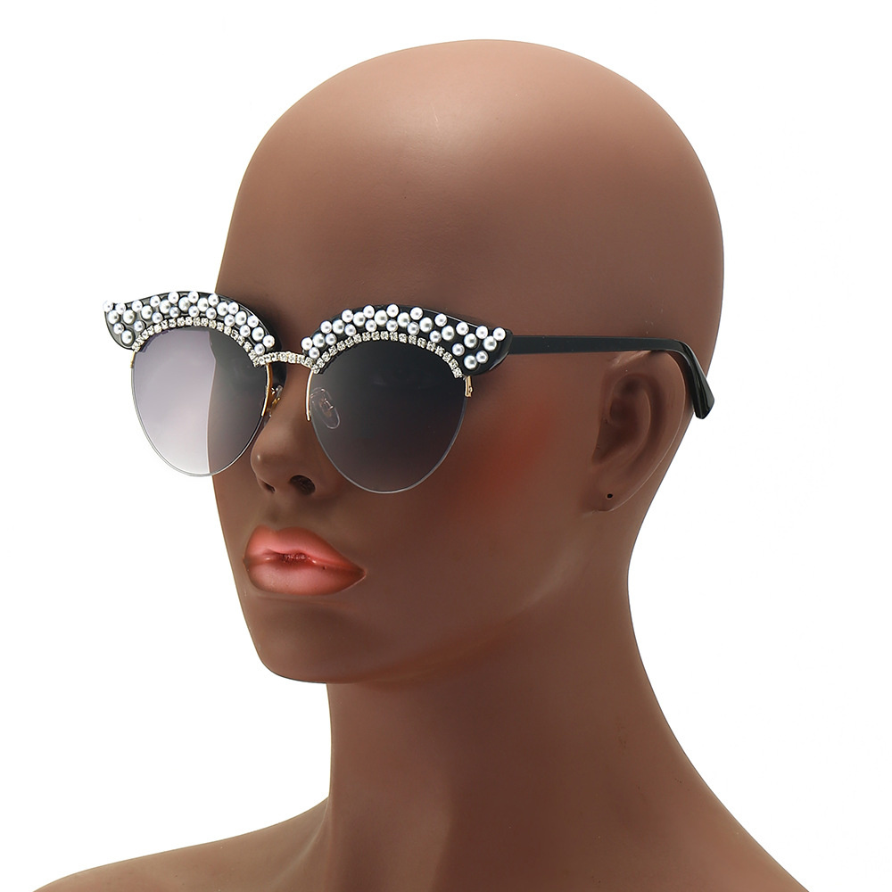 Роскошные дизайнерские солнцезащитные очки «кошачий глаз» женские Винтажные Солнцезащитные очки без оправы Новинка 2023 блестящие искусственные очки для женщин