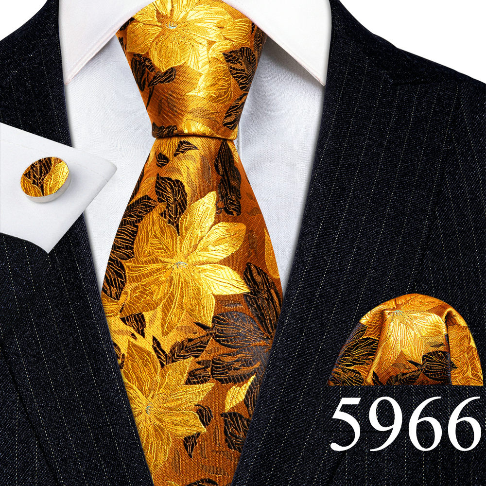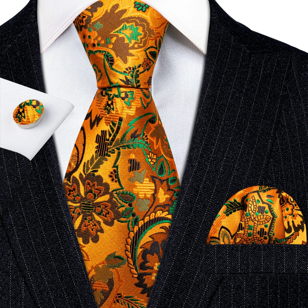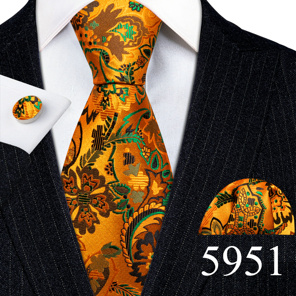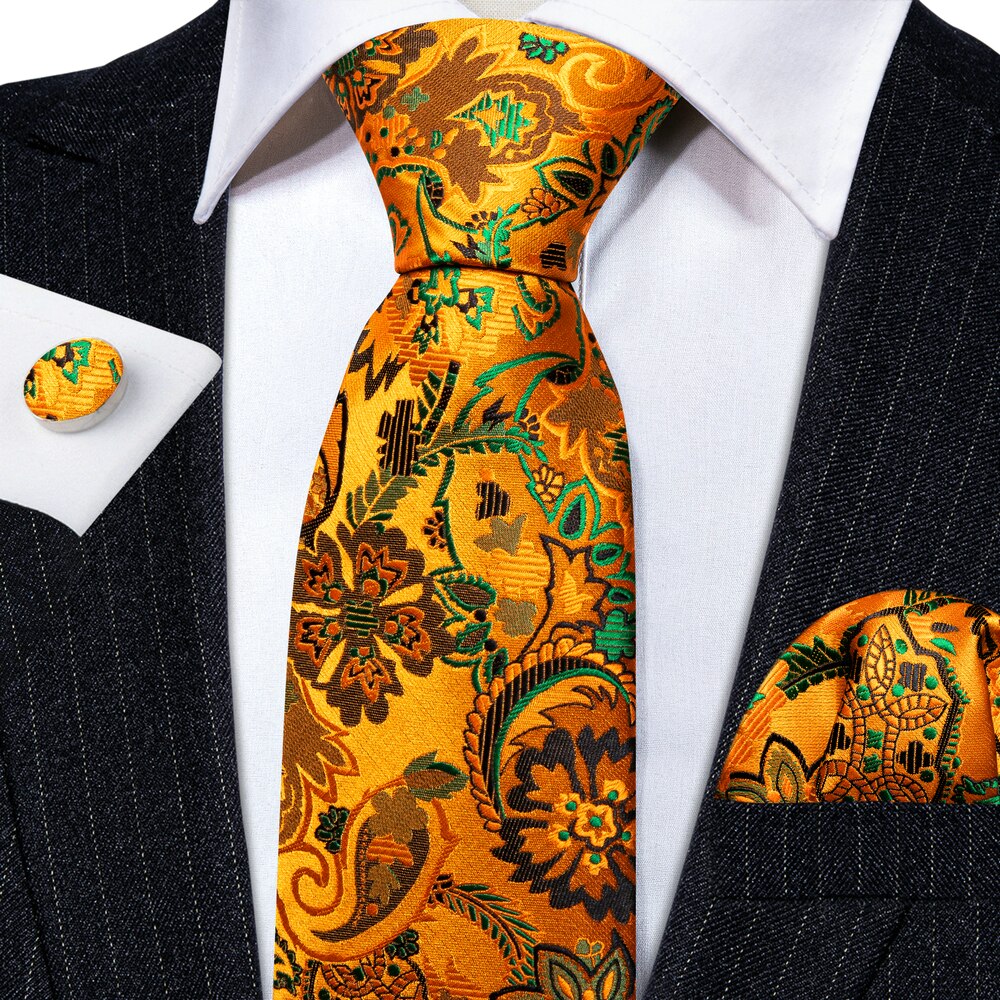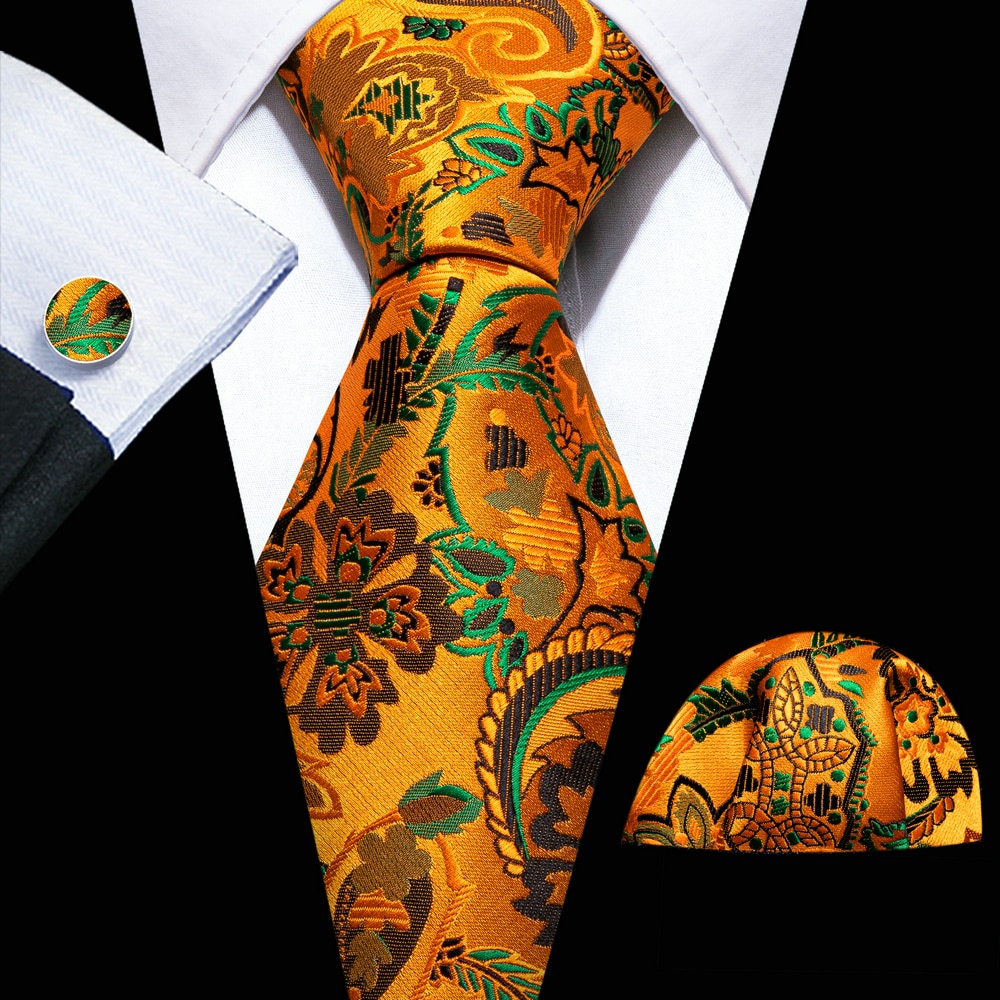 Роскошные галстуки для мужчин Золотой Зеленый цветочный Шелковый шейный Галстук платок Запонки Набор Свадебные Бесплатная доставка Барри · Ван зажим для галстука 5951