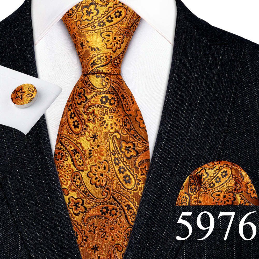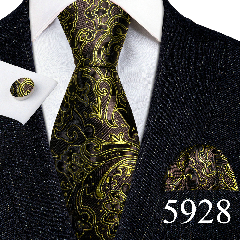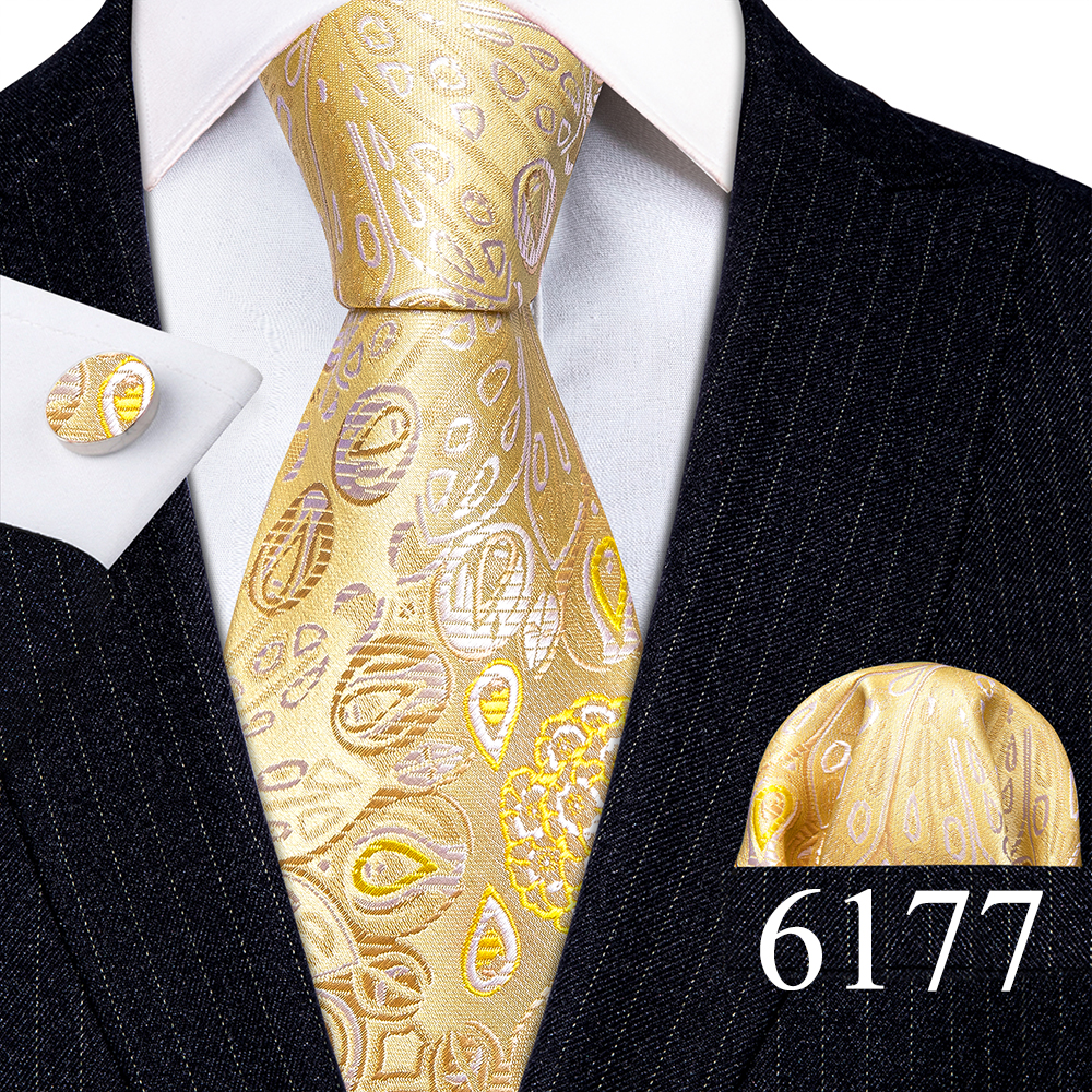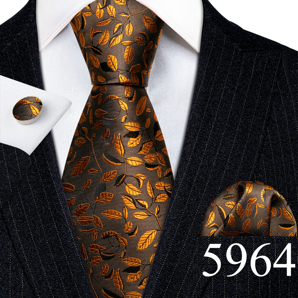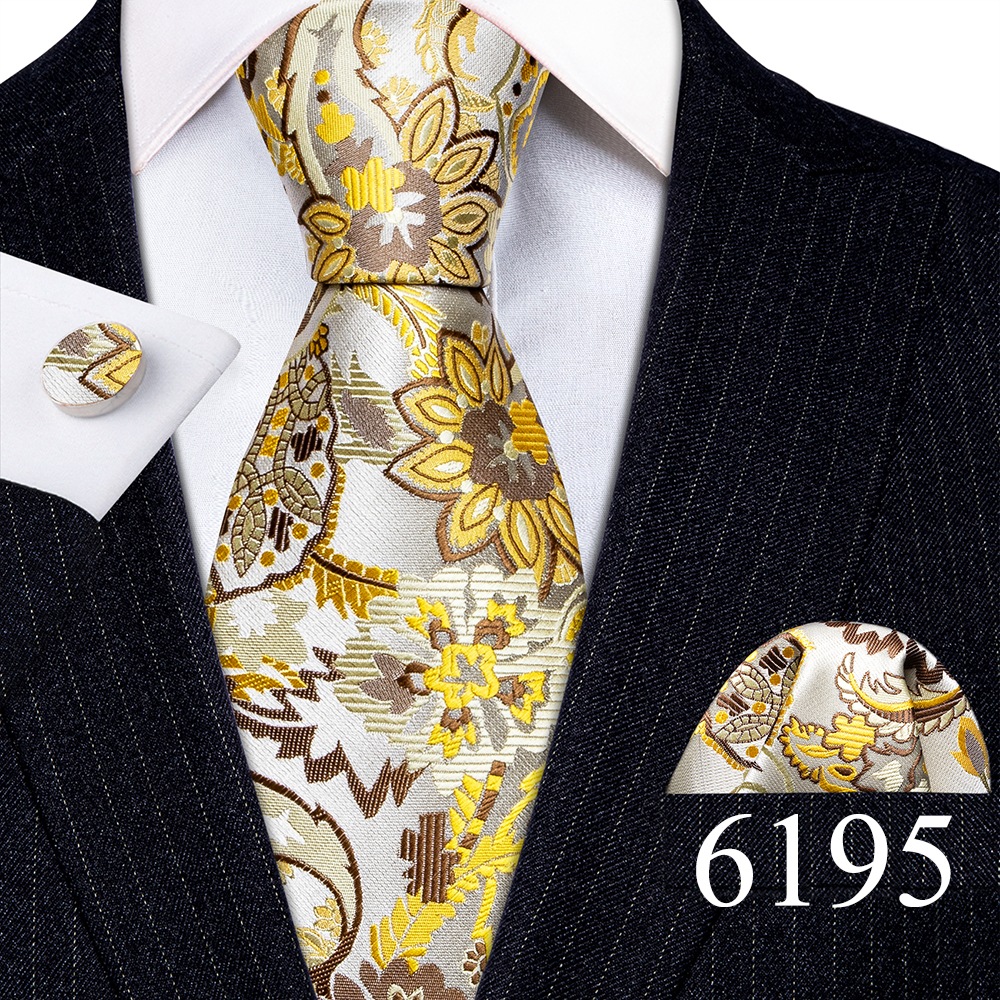 Роскошные галстуки для мужчин Золотой Зеленый цветочный Шелковый шейный Галстук платок Запонки Набор Свадебные Бесплатная доставка Барри · Ван зажим для галстука 5951