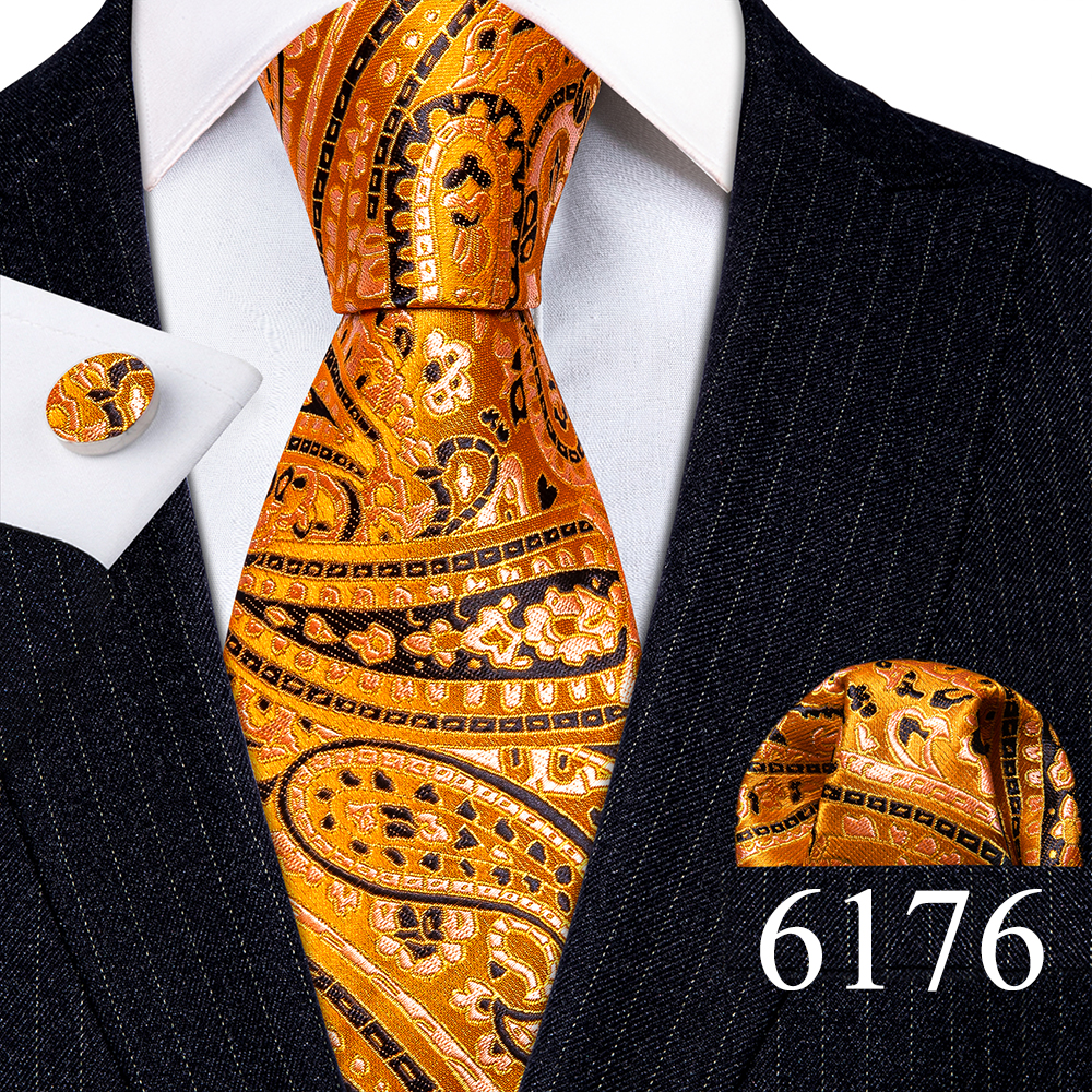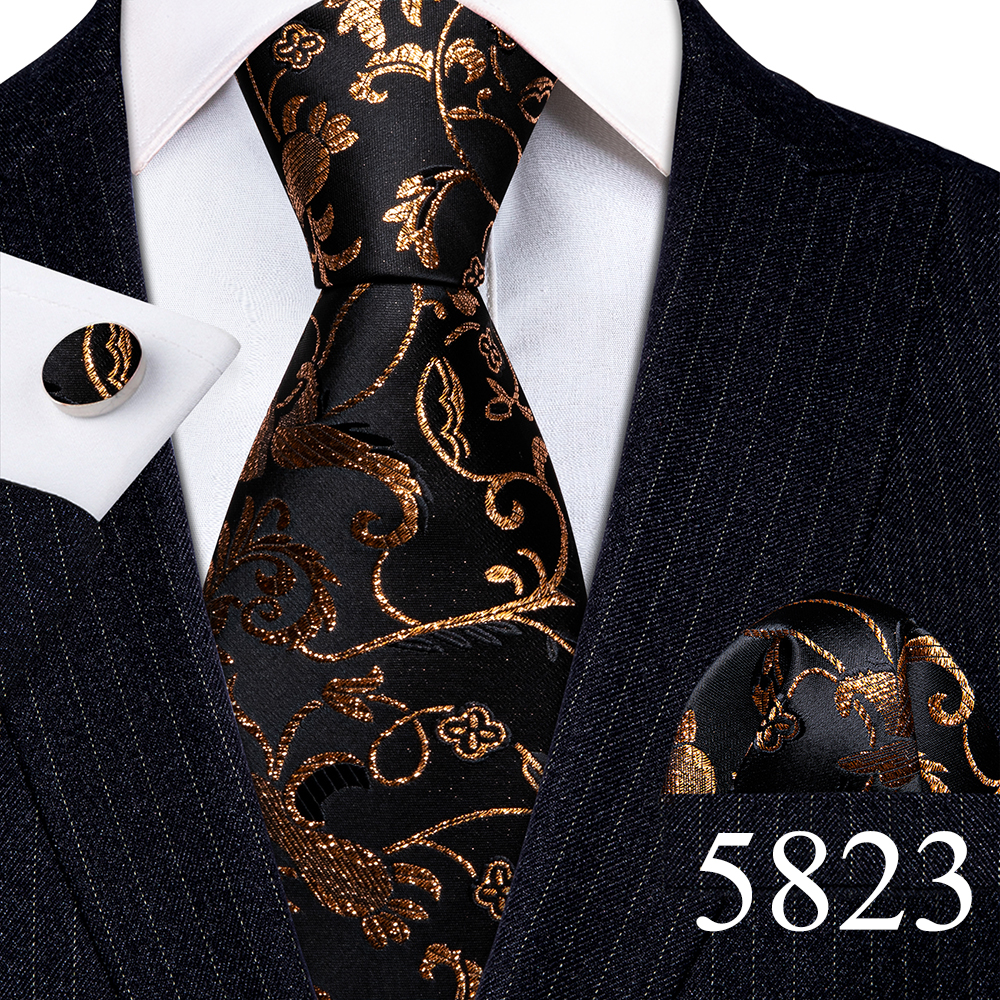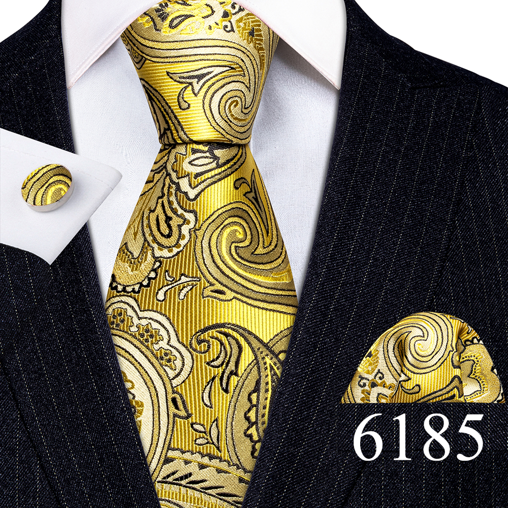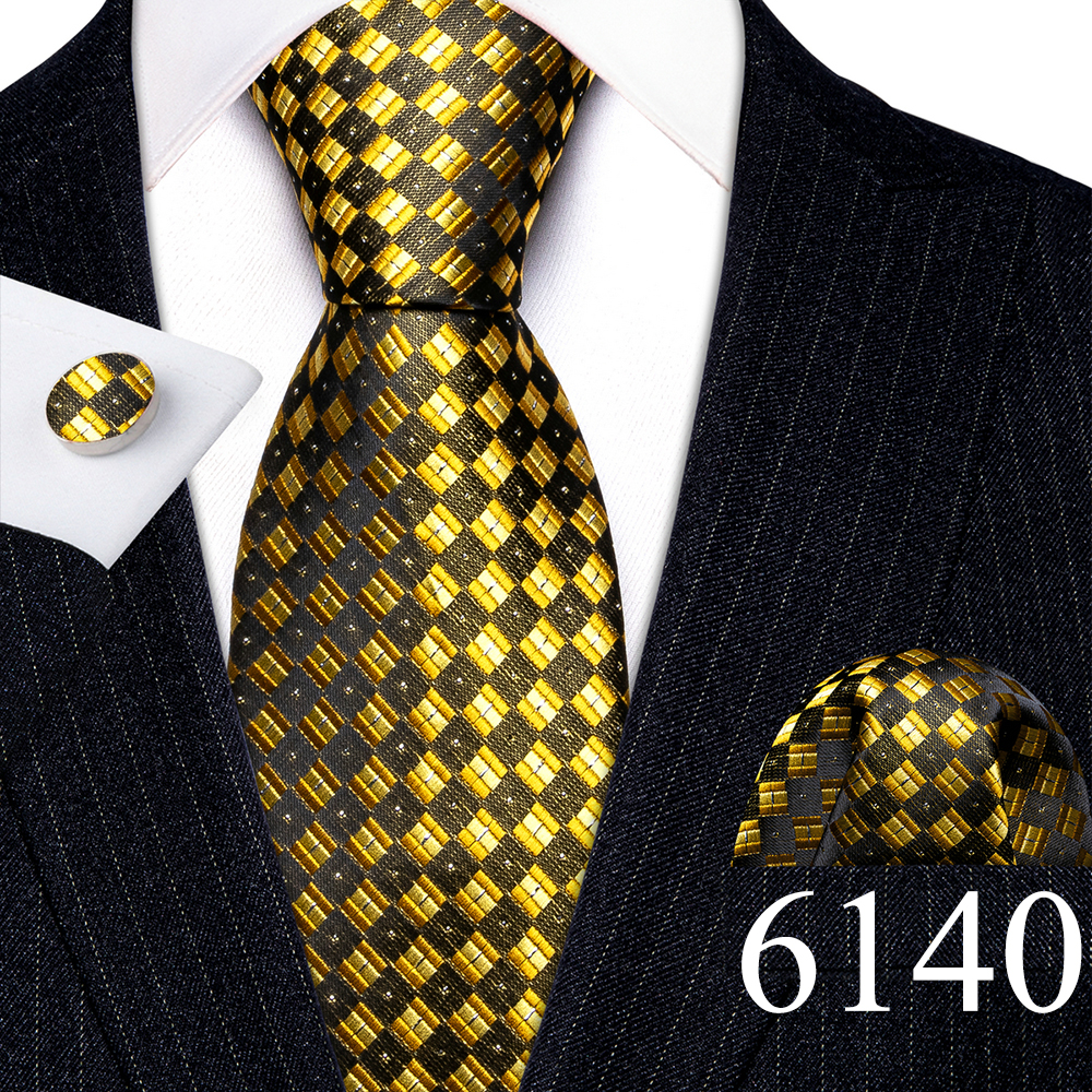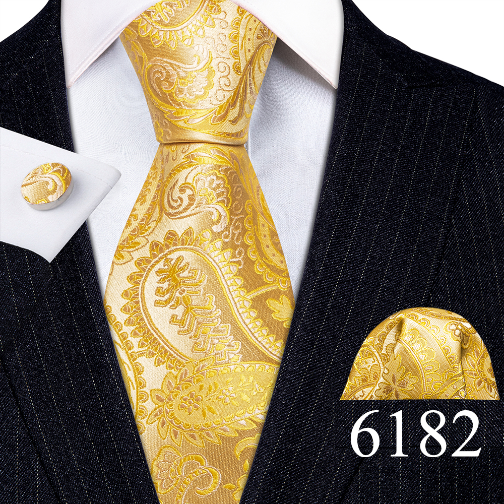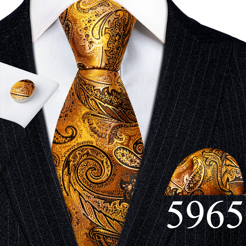 Роскошные галстуки для мужчин Золотой Зеленый цветочный Шелковый шейный Галстук платок Запонки Набор Свадебные Бесплатная доставка Барри · Ван зажим для галстука 5951