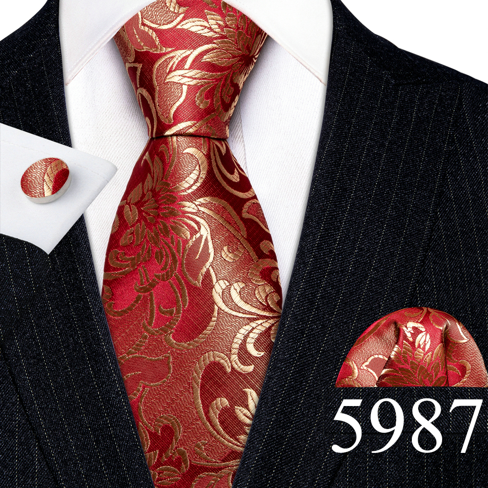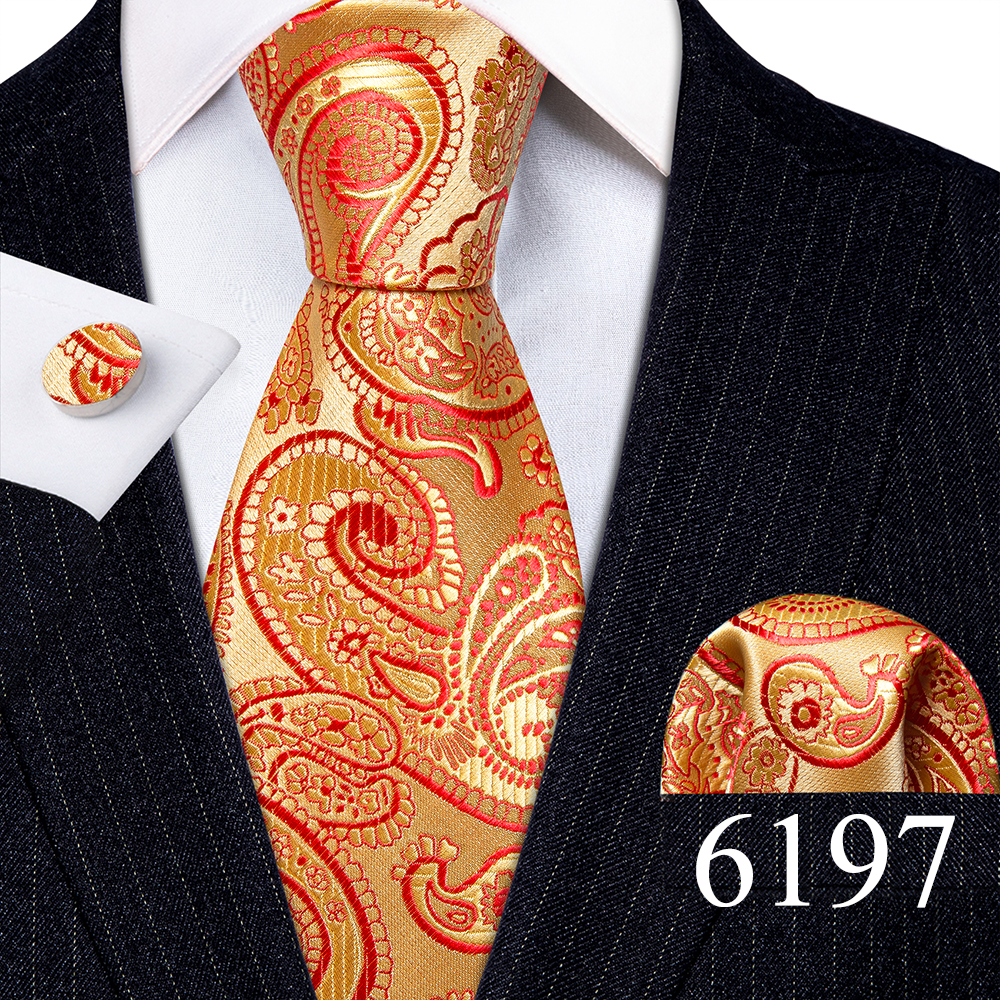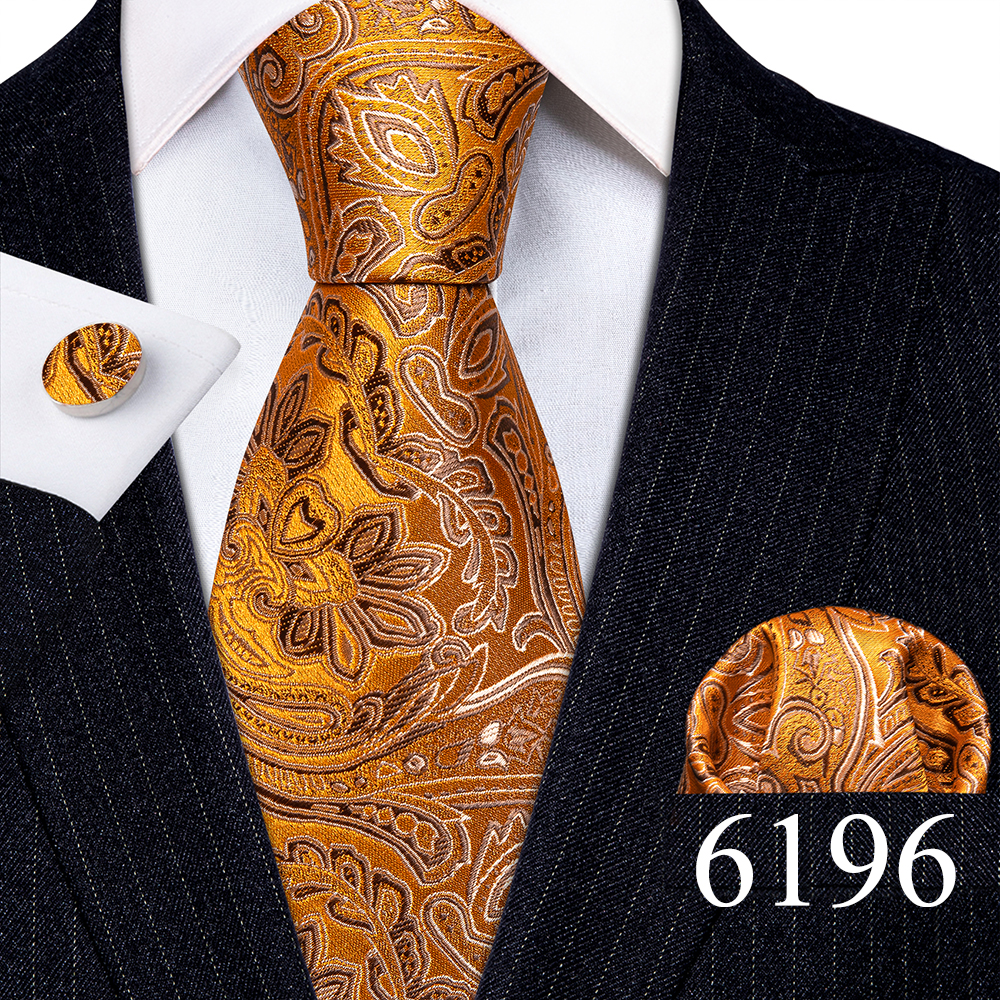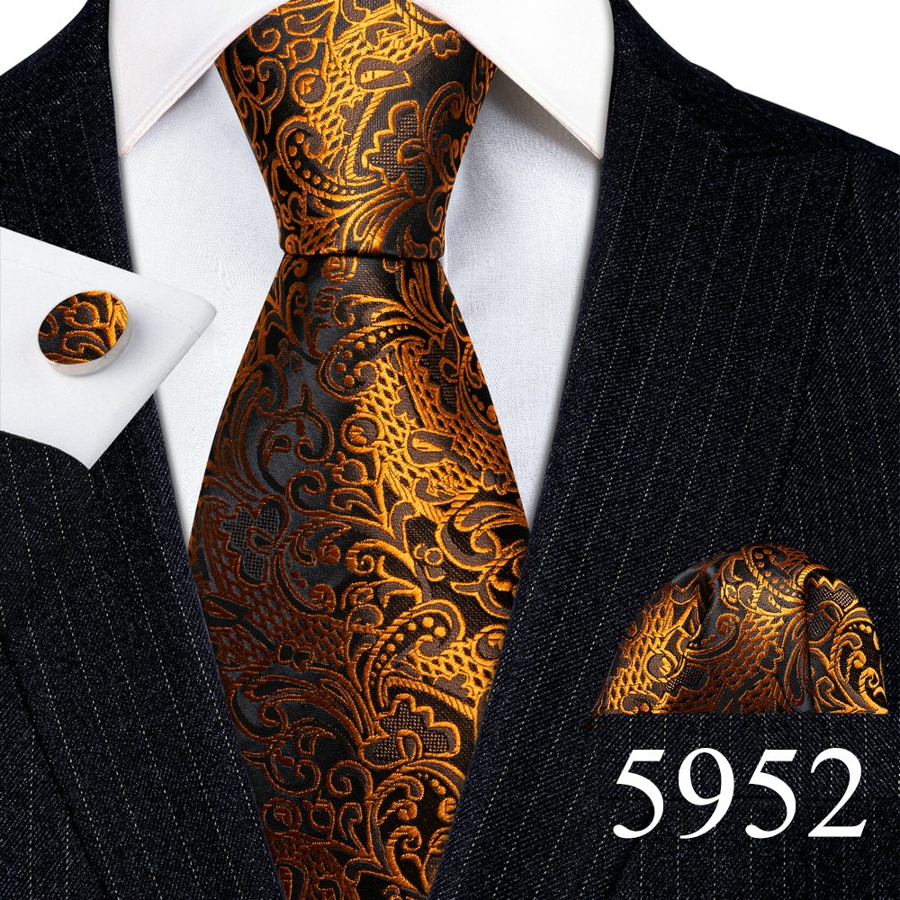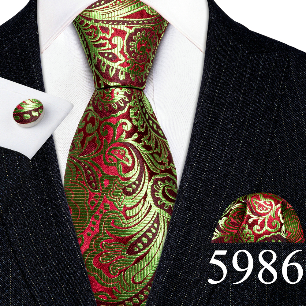 Роскошные галстуки для мужчин Золотой Зеленый цветочный Шелковый шейный Галстук платок Запонки Набор Свадебные Бесплатная доставка Барри · Ван зажим для галстука 5951