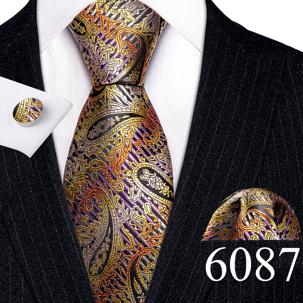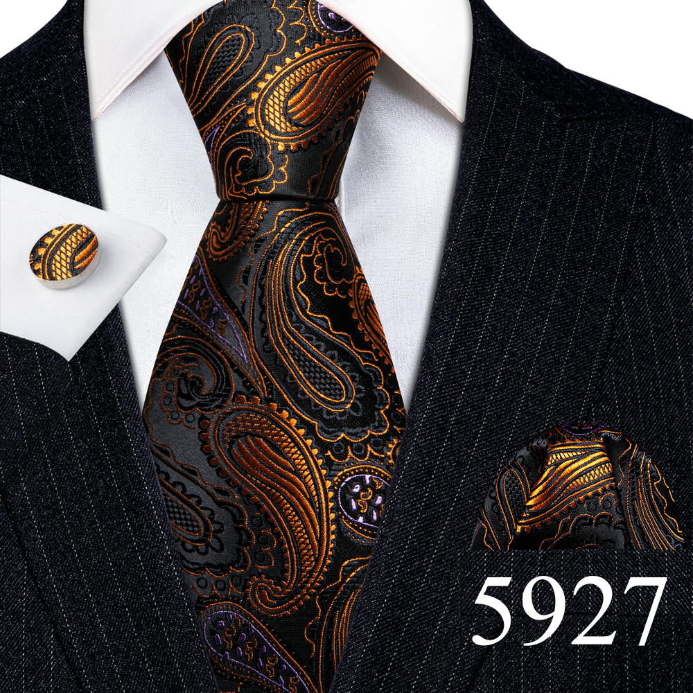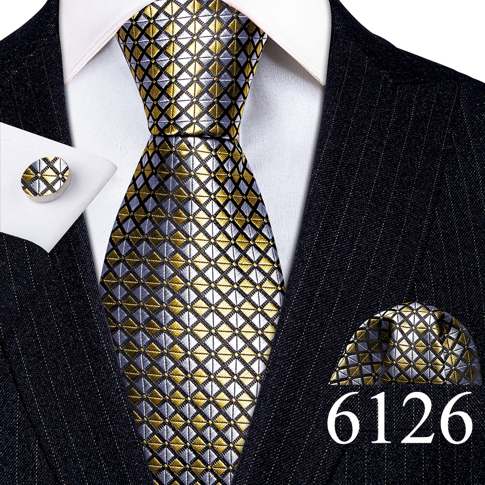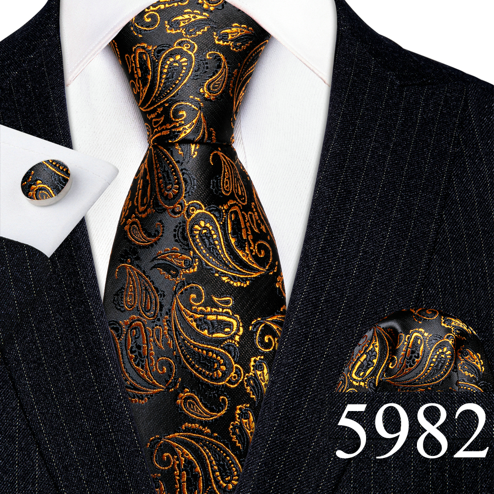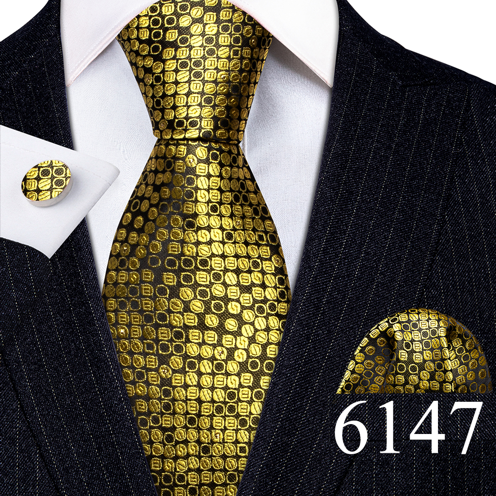 Роскошные галстуки для мужчин Золотой Зеленый цветочный Шелковый шейный Галстук платок Запонки Набор Свадебные Бесплатная доставка Барри · Ван зажим для галстука 5951
