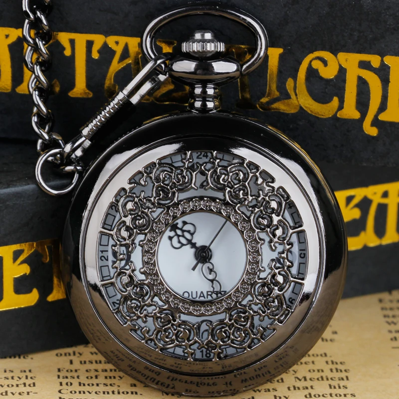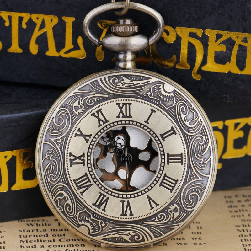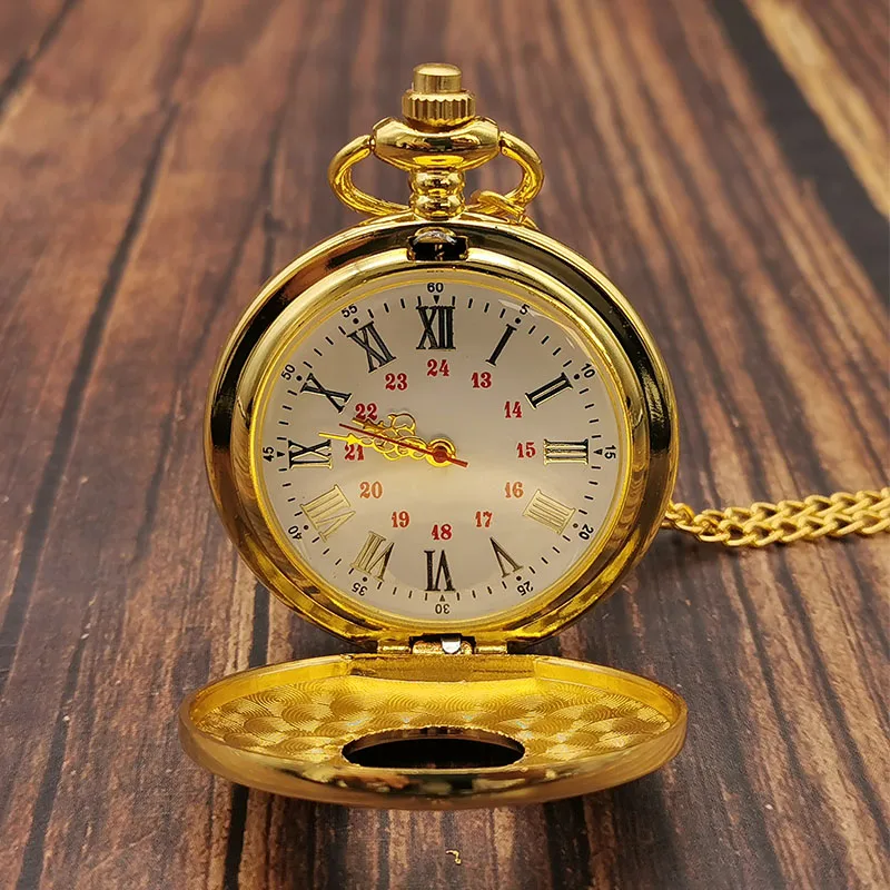 Роскошные кварцевые карманные часы с золотыми римскими цифрами, цепочка для мужчин и женщин, полый чехол, винтажное ожерелье с кулоном, лучшие подарки для мужчин и женщин