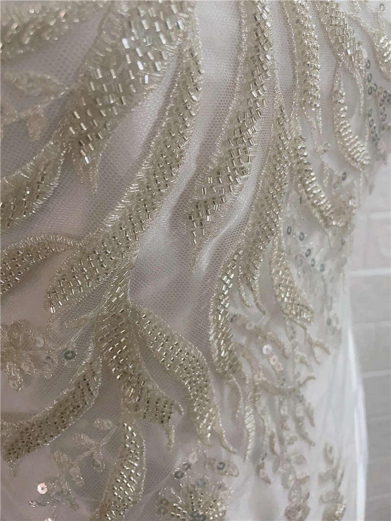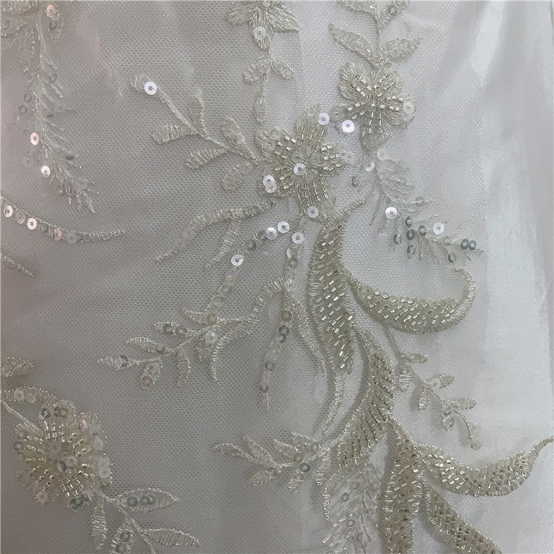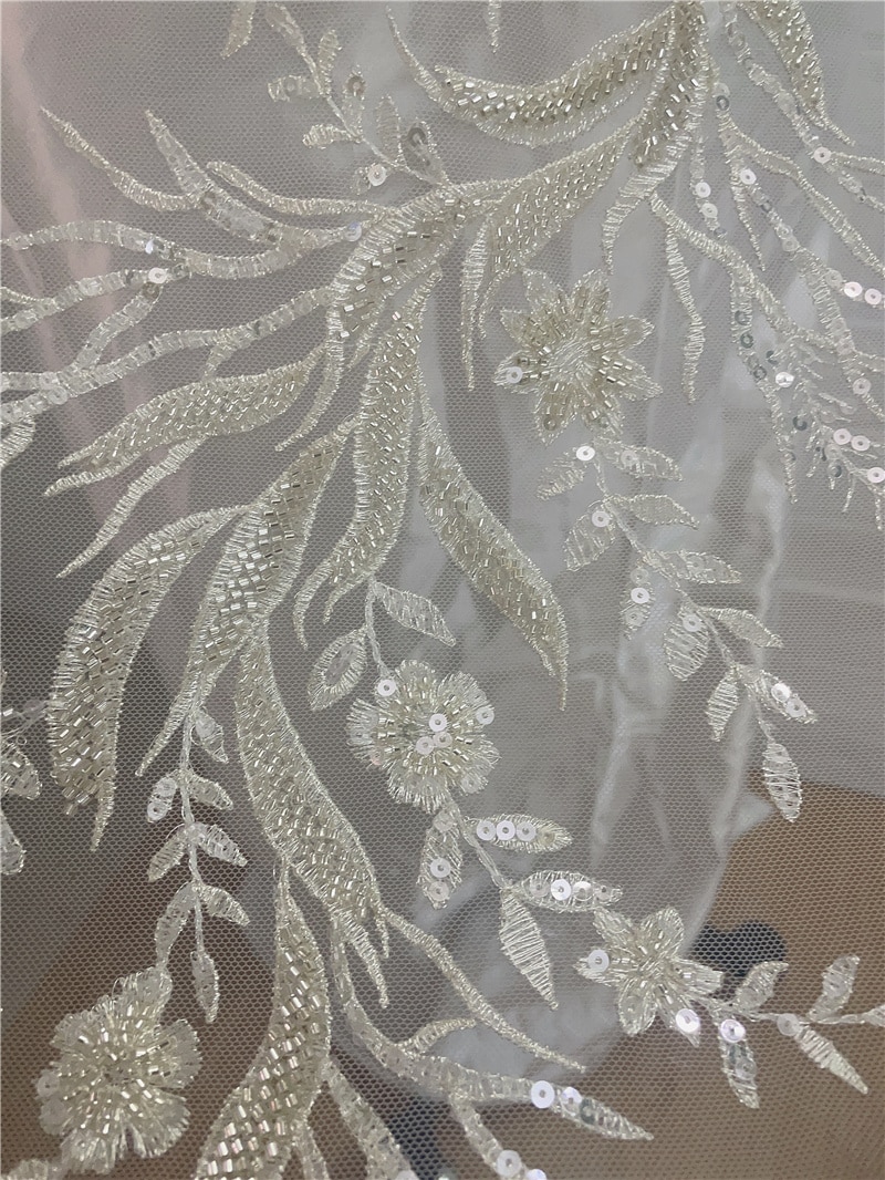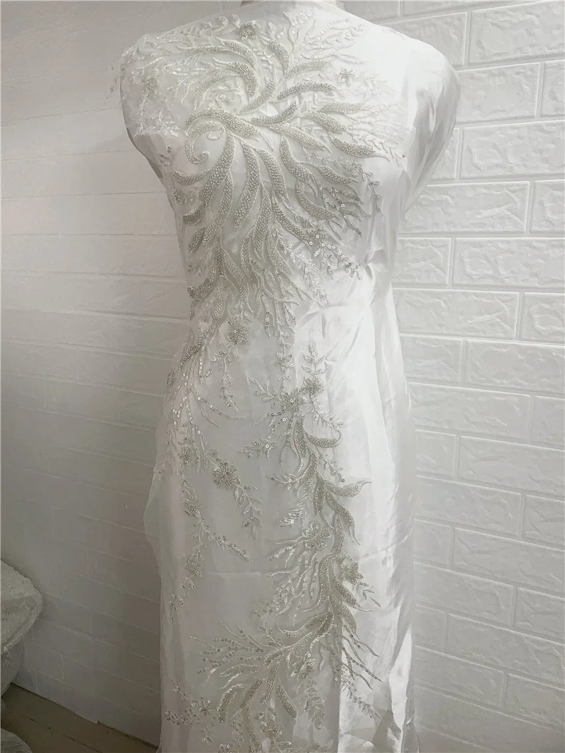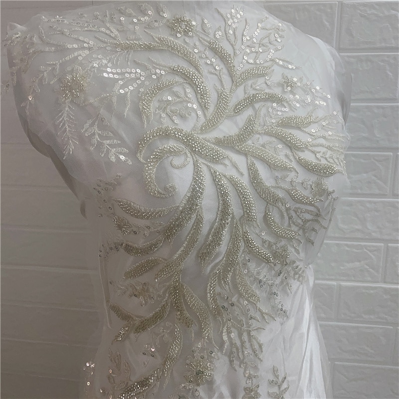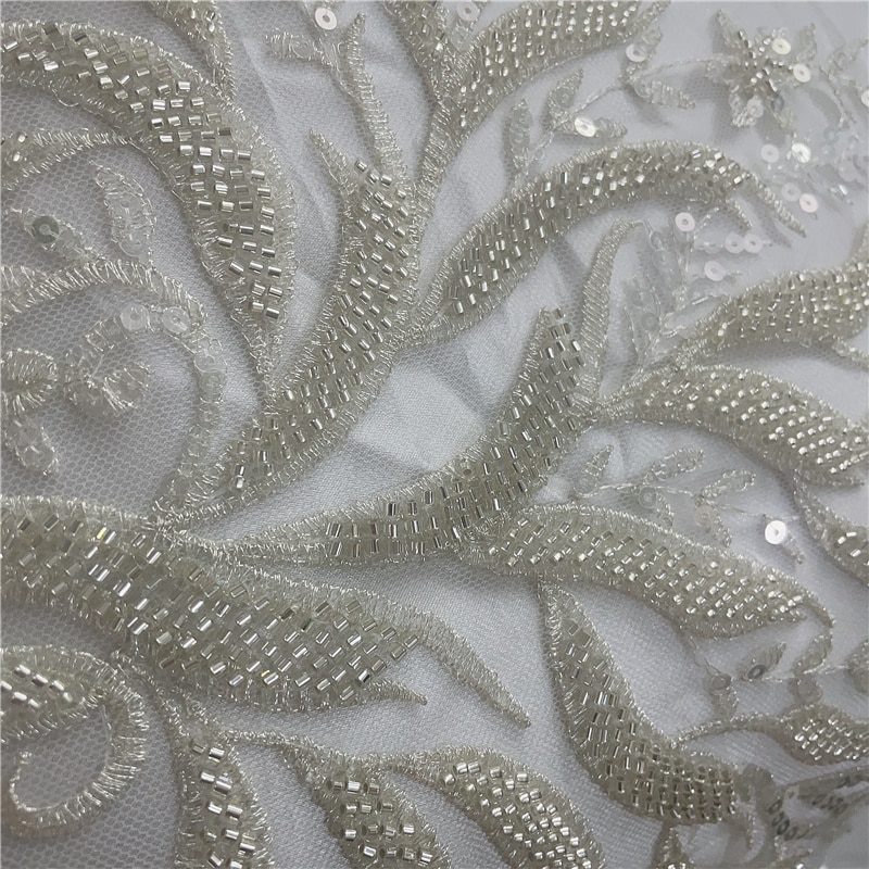 Роскошные Серебристые белые тяжелые бусины цветочное тиснение свадебное платье кружевное платье аппликация для шитья своими руками