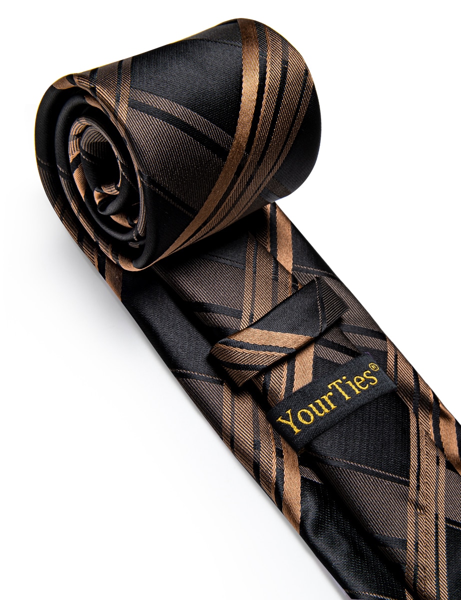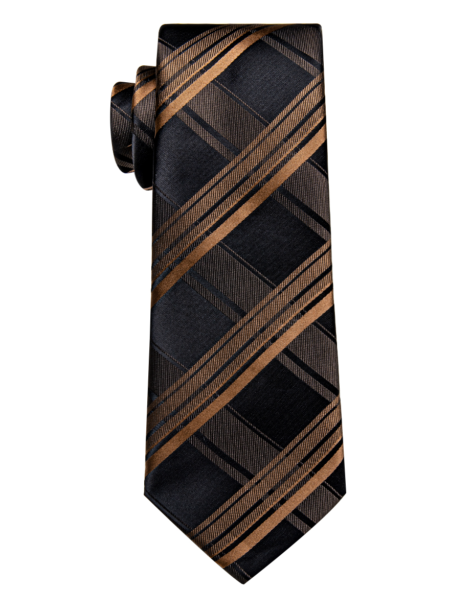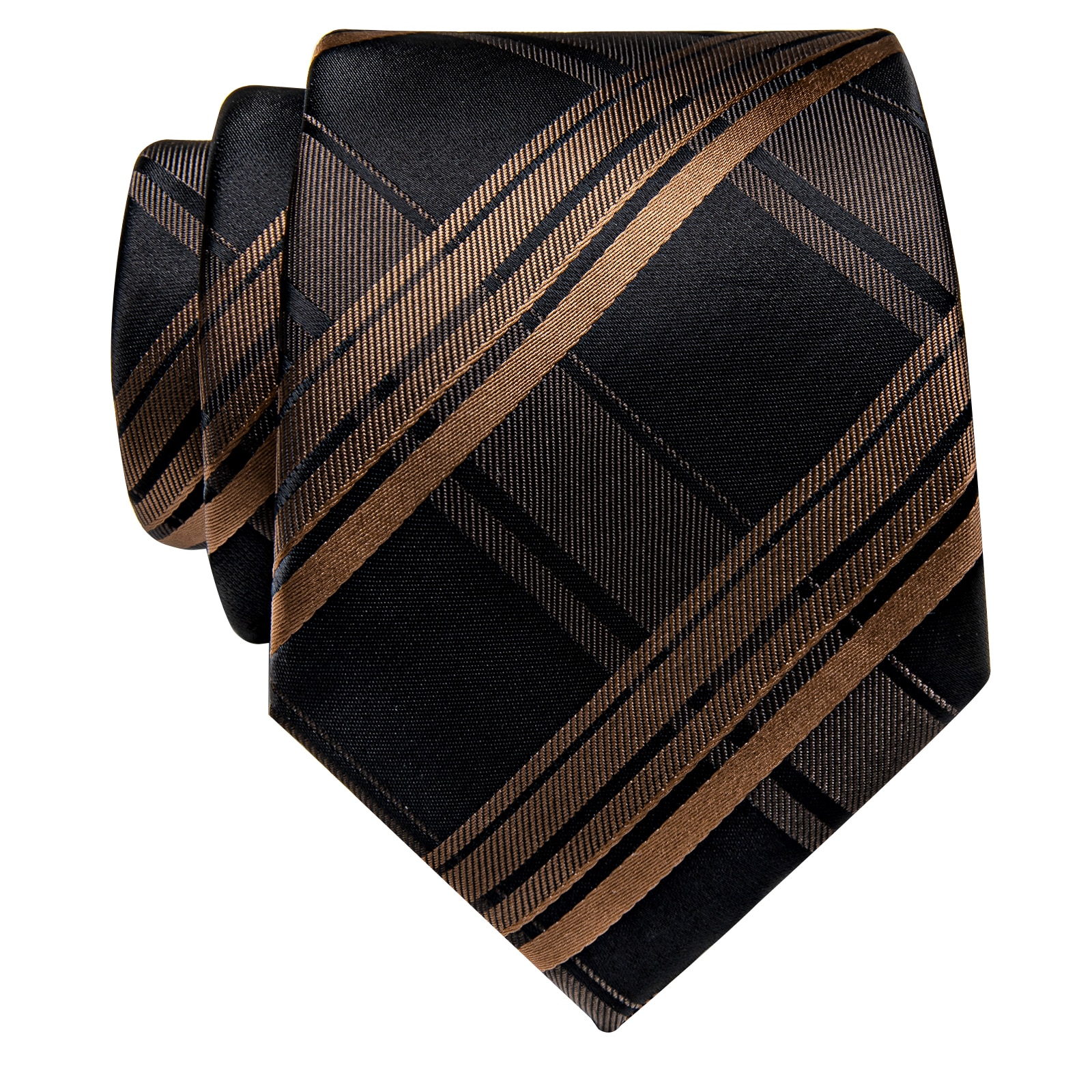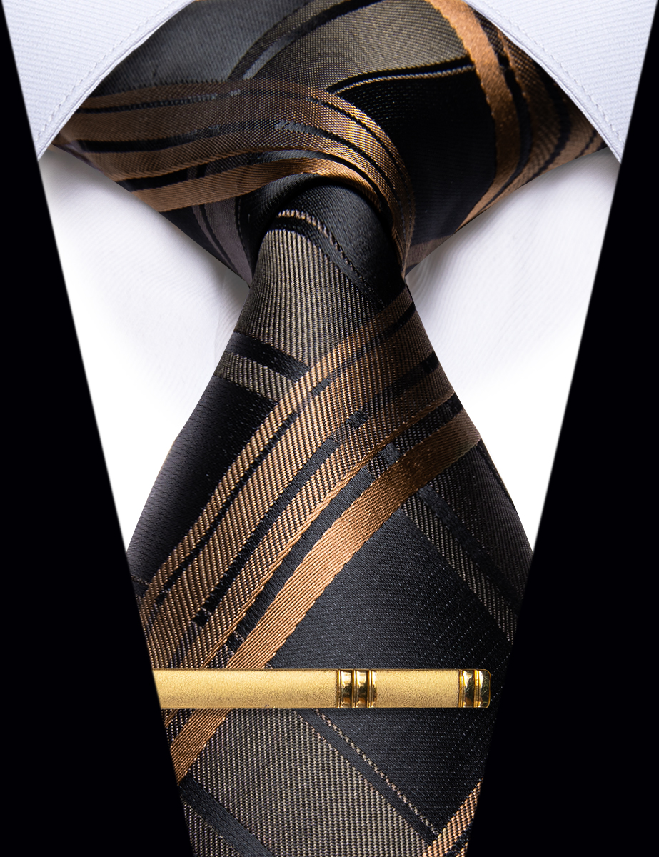 Роскошный черный, коричневый, серый полосатый галстук для мужчин, аксессуары для свадьбы, Мужской Шелковый галстук в клетку, зажим для галстука, праздничные подарки