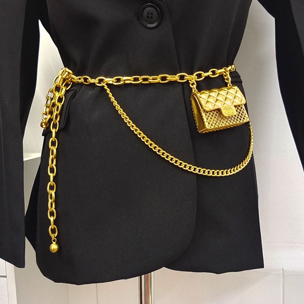 Роскошный дизайнерский Женский Повседневный тонкий пояс для брюк, платьев, пояс с кисточкой, металлическая сумка, пояс, ремень с золотой цепочкой