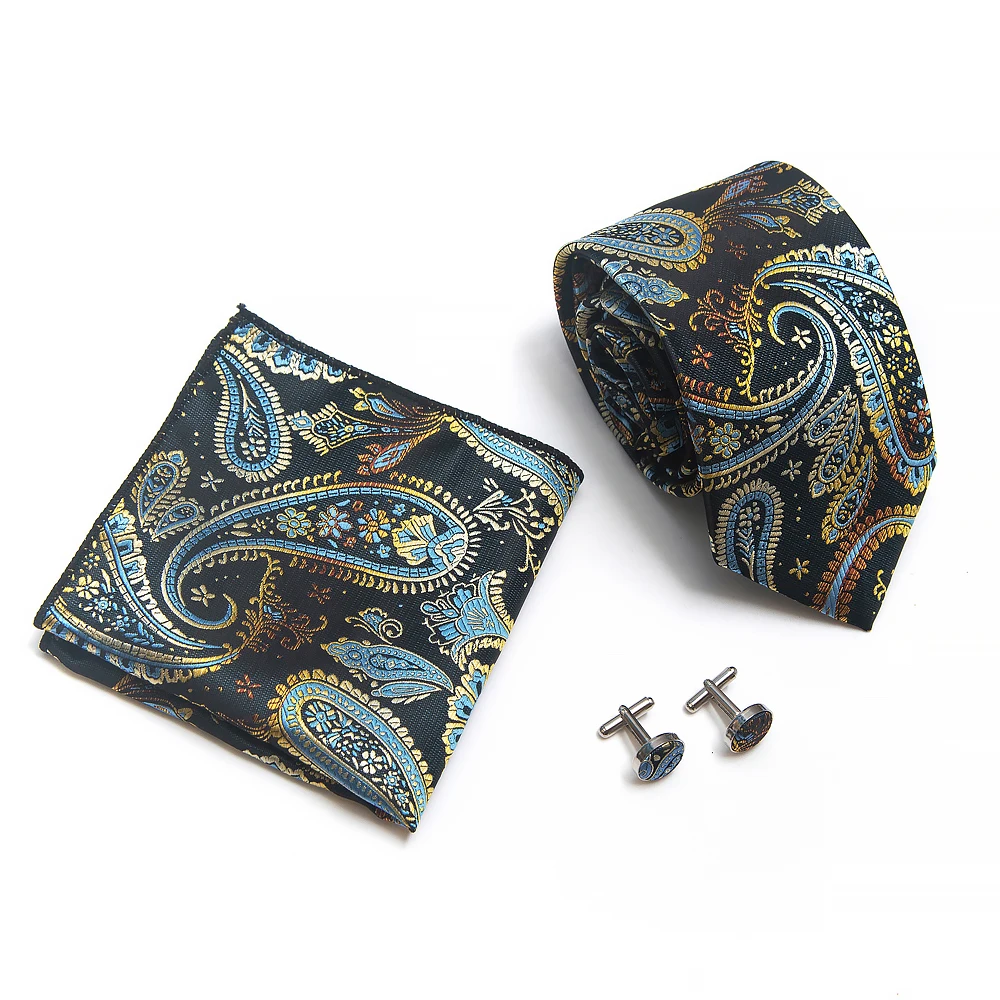 Роскошный галстук для мужчин 100% шелковый галстук набор запонок галстук мужской галстук официальная одежда с принтом на День отца