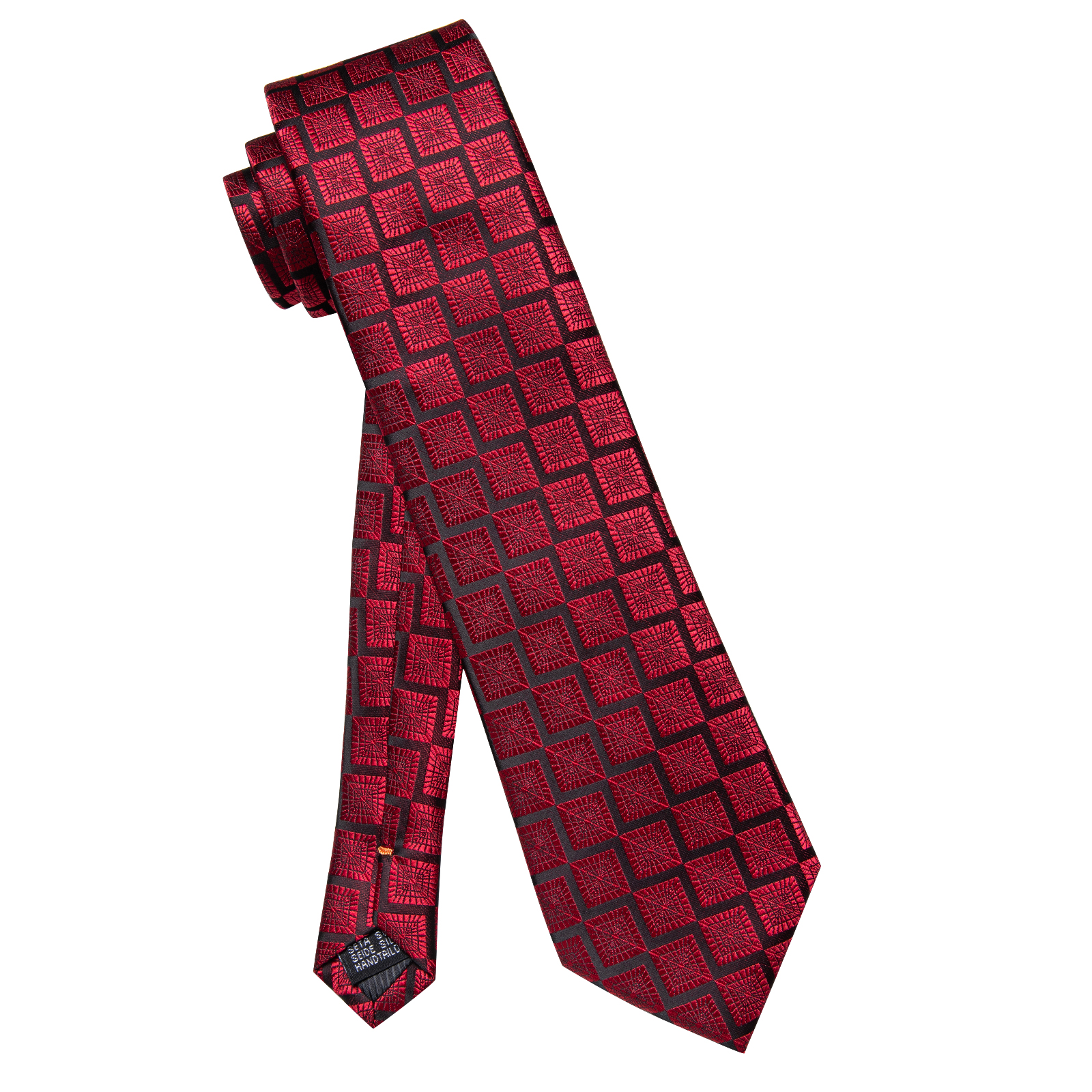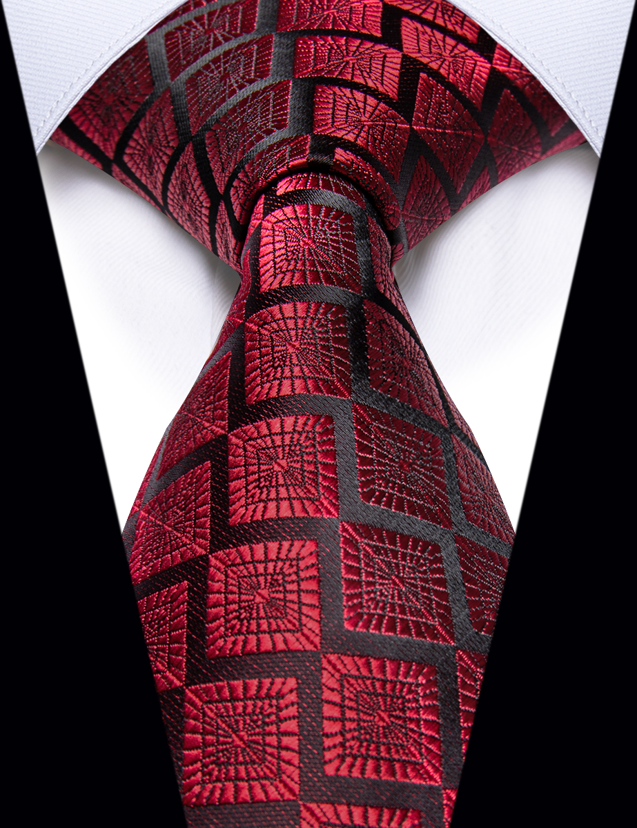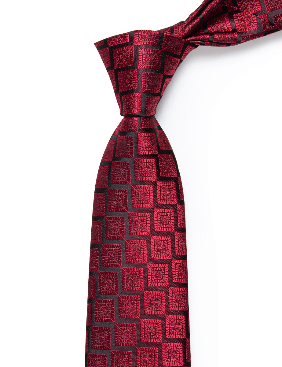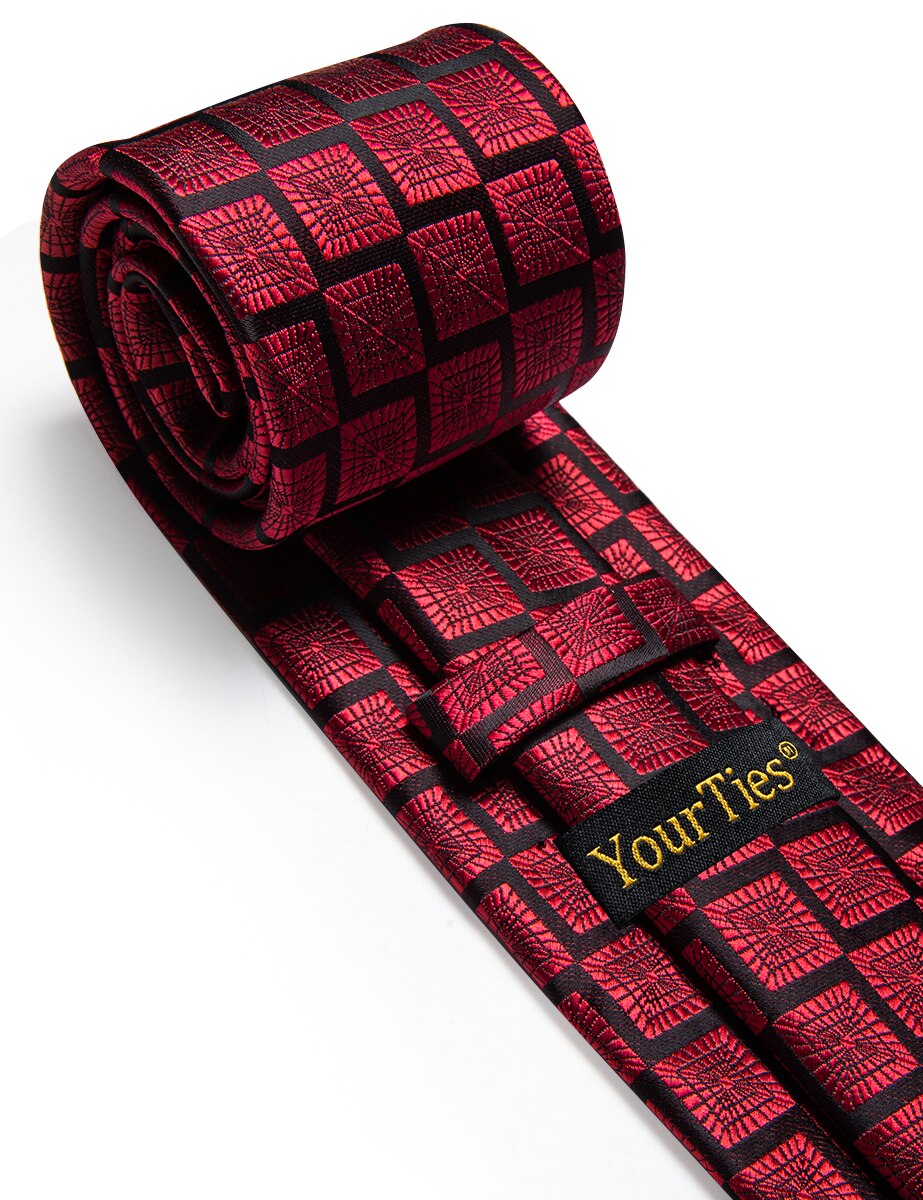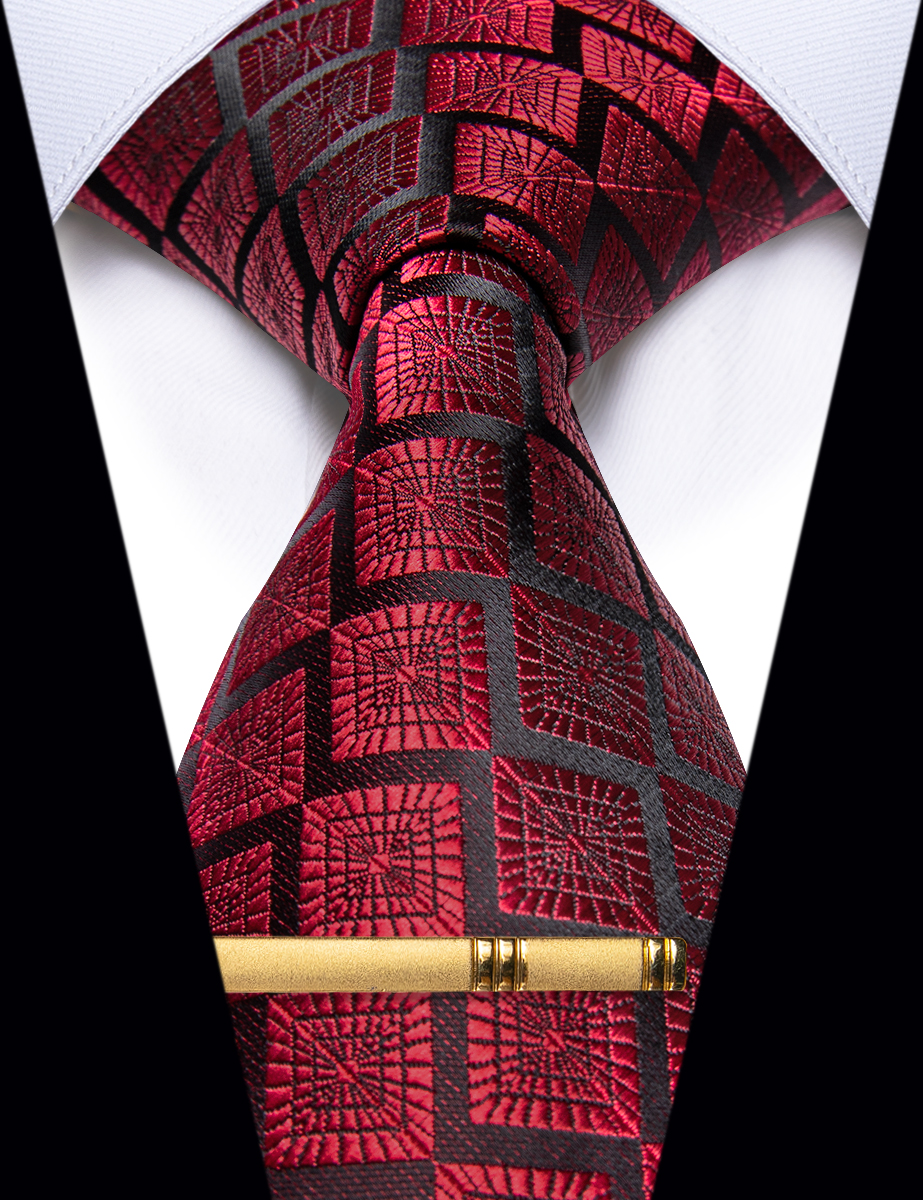 Роскошный красный черный галстук в клетку для мужчин, набор зажимов, новинка, Шелковый мужской галстук для свадебной вечеринки, подарок для мужчин