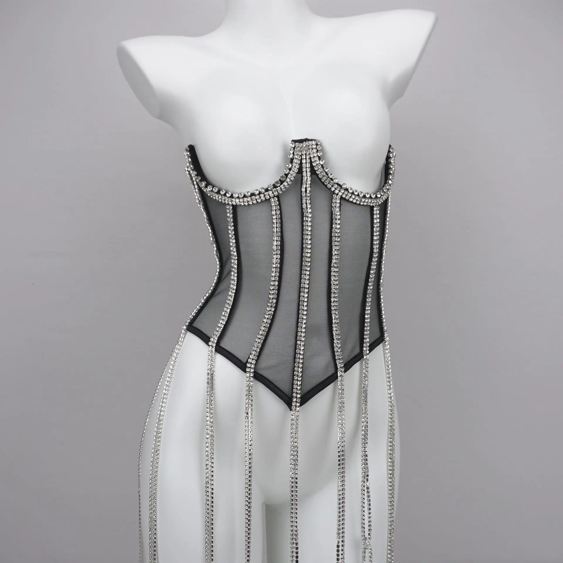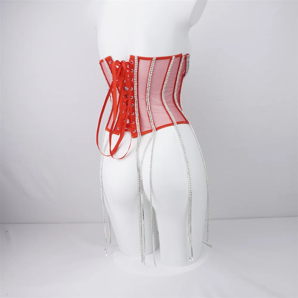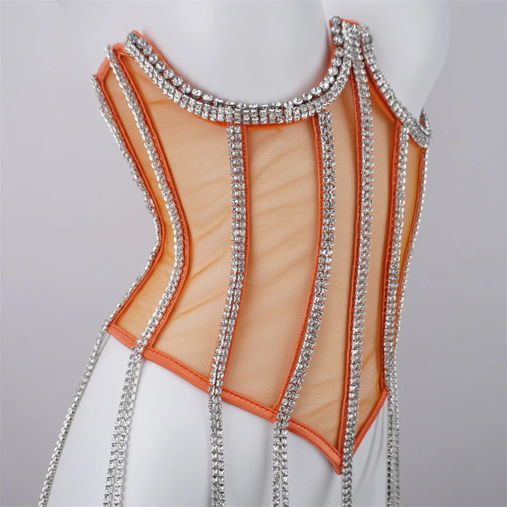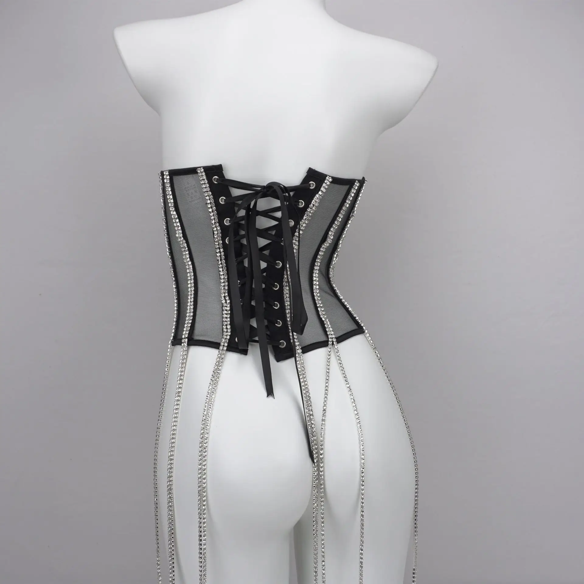 Роскошный женский корсет со стразами, тонкий женский корсет с прозрачным кружевом и открытой спиной