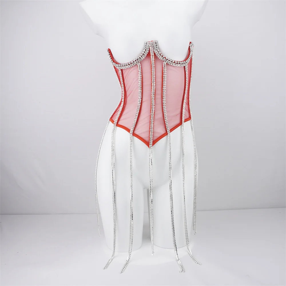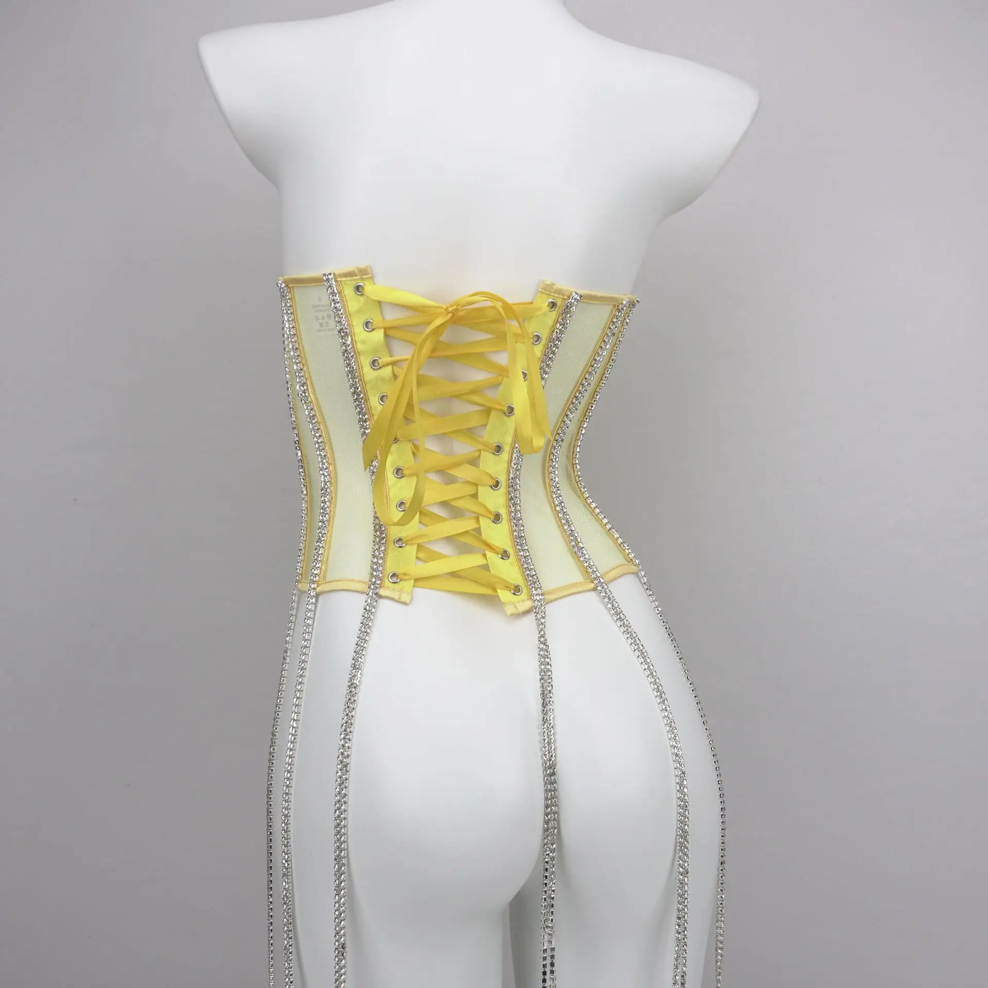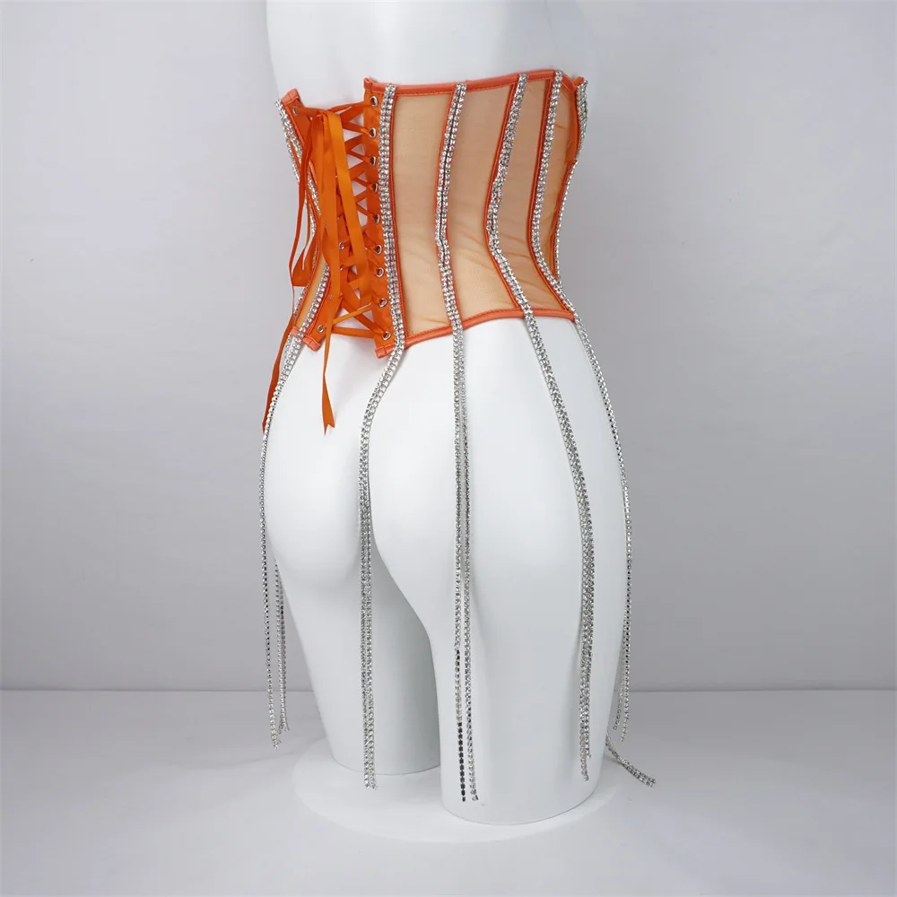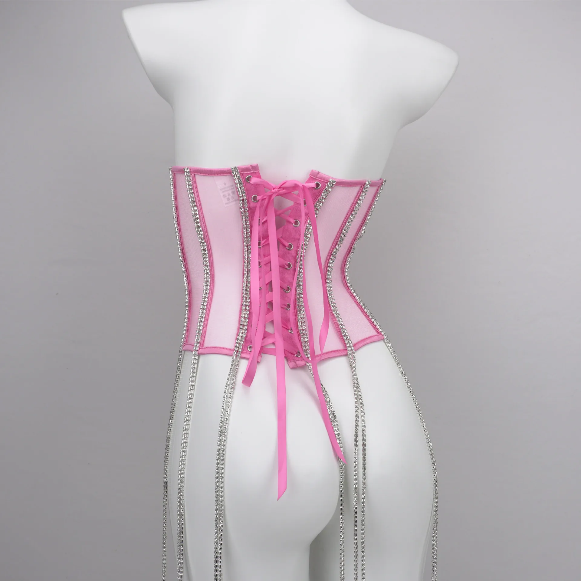 Роскошный женский корсет со стразами, тонкий женский корсет с прозрачным кружевом и открытой спиной