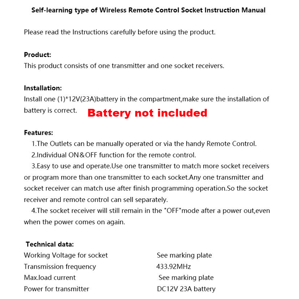 <span class="SnowProductCharacteristics_SnowProductCharacteristicsItem__titleContent__534v9">Номер модели</span> Remote Controlled Switch Socket