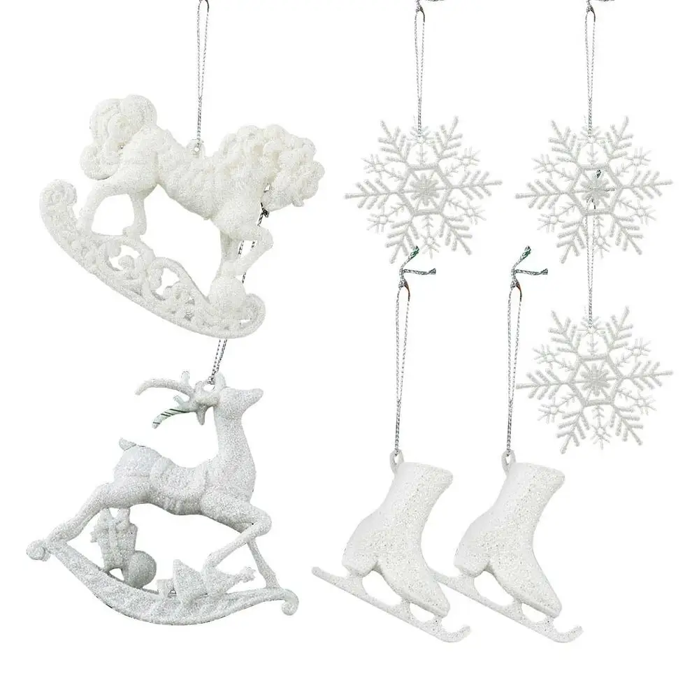 Рождественская подвеска, белые украшения для рождественской елки, подвесные украшения, снежинки, лошадь лося