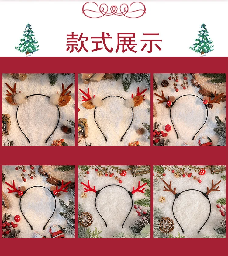 Рождественская повязка на голову с оленями рогами цветами застежкой головные уборы для детей и взрослых новый год искусство Хэллоуин косплей