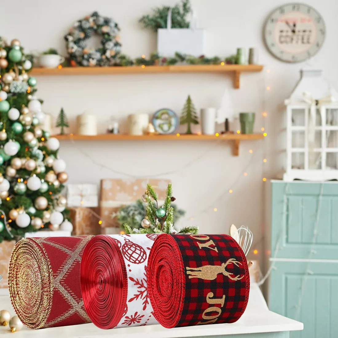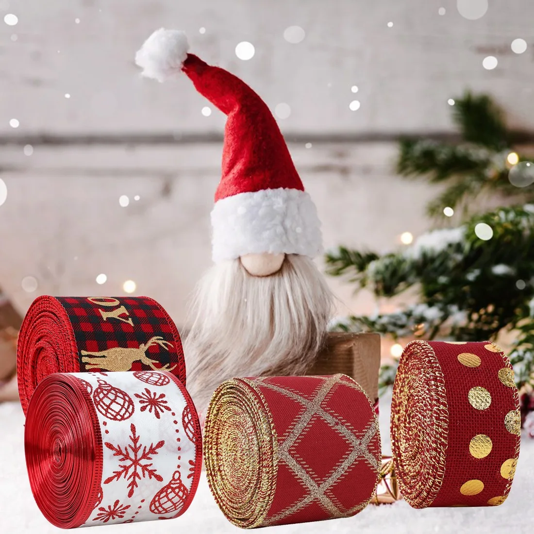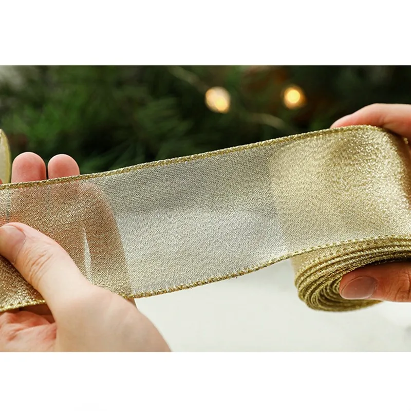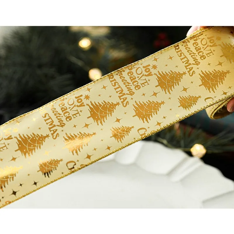Рождественская тканевая лента «сделай сам» для упаковки подарков, декор для рождественской елки, лента, венок, банты, поделки с проводным краем, подарок