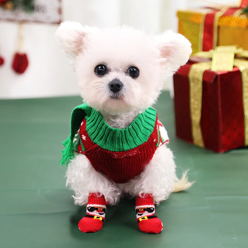 Рождественские милые вязаные носки для маленьких собак и кошек ботинки для чихуахуа зимняя теплая Домашняя одежда защита лап без застежек