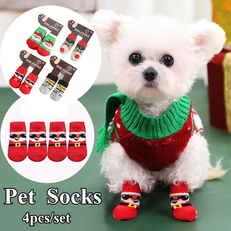 Носки для домашних животных, рождественский стиль, принт Санта-Клауса, принт летучей мыши и принт лося очень милые. Материал из полиэстера, ткань теплая и удобная.