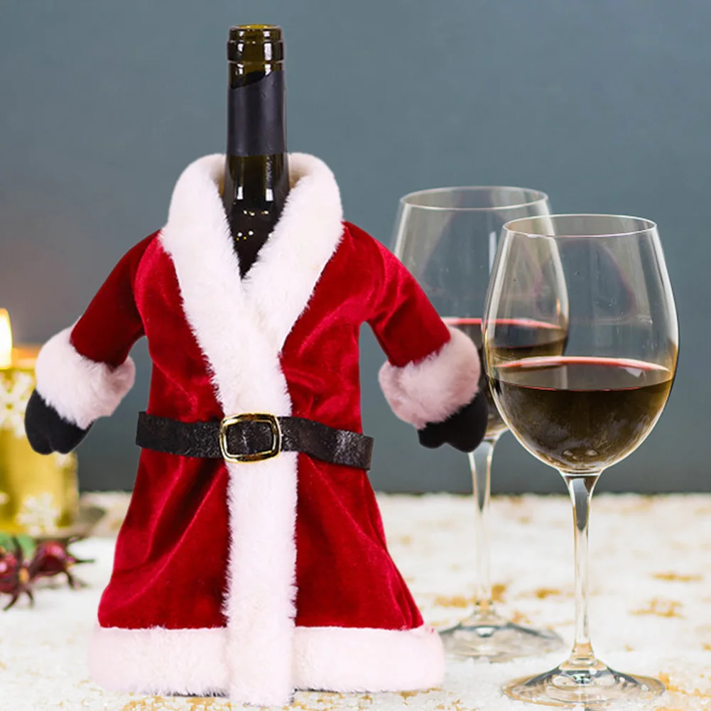 Рождественский чехол для винной бутылки, бархатное платье, шапочка для шампанского, сумка для винной бутылки, рукав, Рождественский новогодний обеденный стол, Рождественское украшение