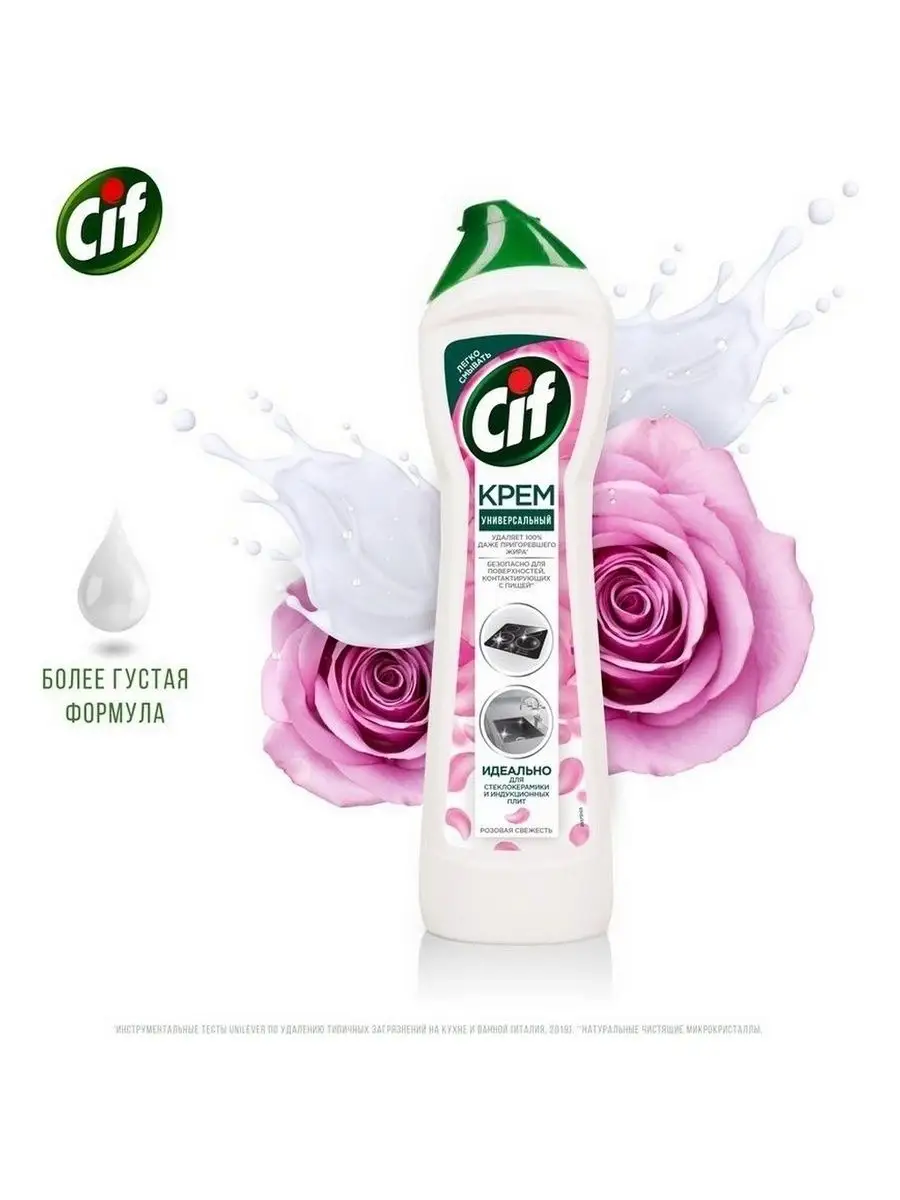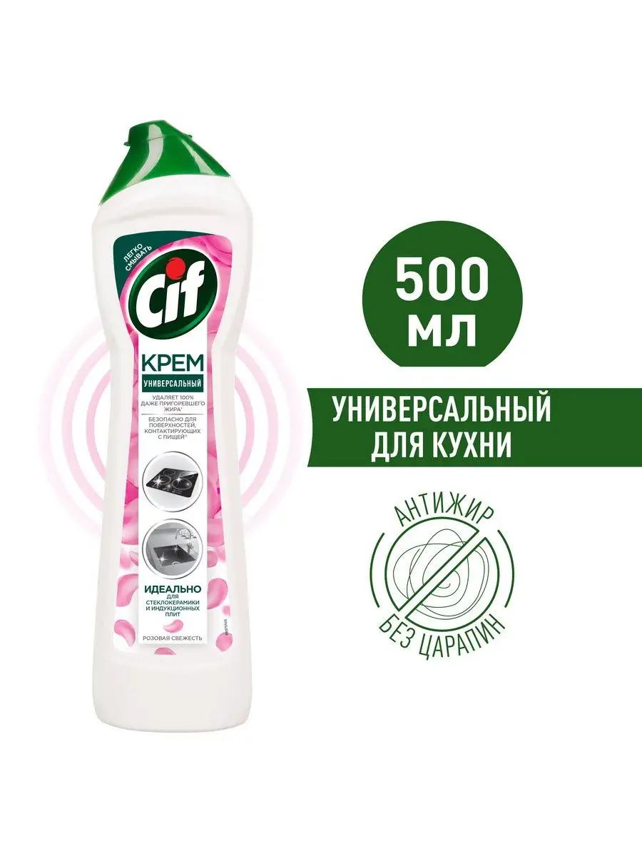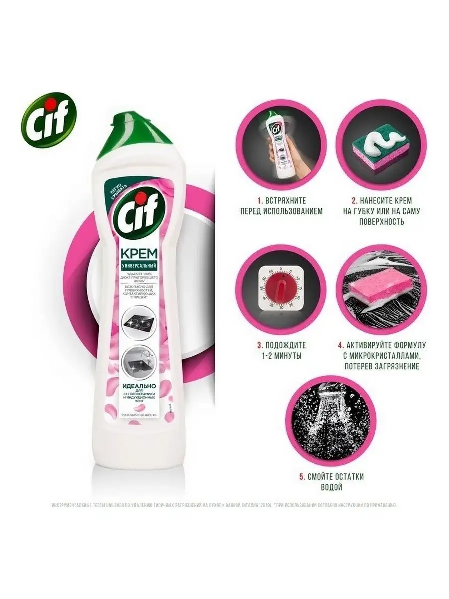 Описание: Как выбрать моющее средство для кухни? Ведь необходимо качественно удалить жирные пятна и нагар и при этом обеспечить безопасность поверхностей, контактирующих с едой. Решение есть: новинка Cif - чистящий крем Розовая свежесть для кухни.Обновленная формула легко побеждает жир, остатки еды и масляные пятна*. Благодаря кремовой текстуре и чистящим микрокристаллам средство Cif проникает внутрь загрязнений, расщепляет их и бережно удаляет, не повреждая** даже деликатные поверхности, как стеклокерамика. Крем подходит для чистки варочной поверхности, духовки, микроволновки, столешницы и мойки.Чистящий крем Cif - это сочетание нежной кремовой текстуры для глубокого проникновения внутрь пятен и активных микрокристаллов для их удаления. Cif эффективно борется с загрязнениями и оставляет легкий цветочный ароматCif - дом снова красив!*Инструментальные тесты Unilever по удалению типичных загрязнений на кухне и ванной (Италия, 2019)**Инструментальные тесты Unilever (Италия, Россия, 2018-2020)
