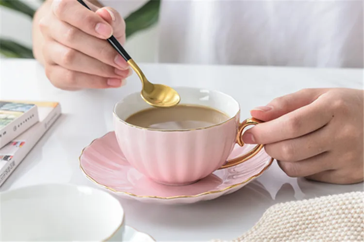Розовые простые креативные фарфоровые чашки, блюдца, керамические простые чайные наборы, современные дизайнерские кофейные чашки, зеркальные кофейные чашки, набор чайных чашек
